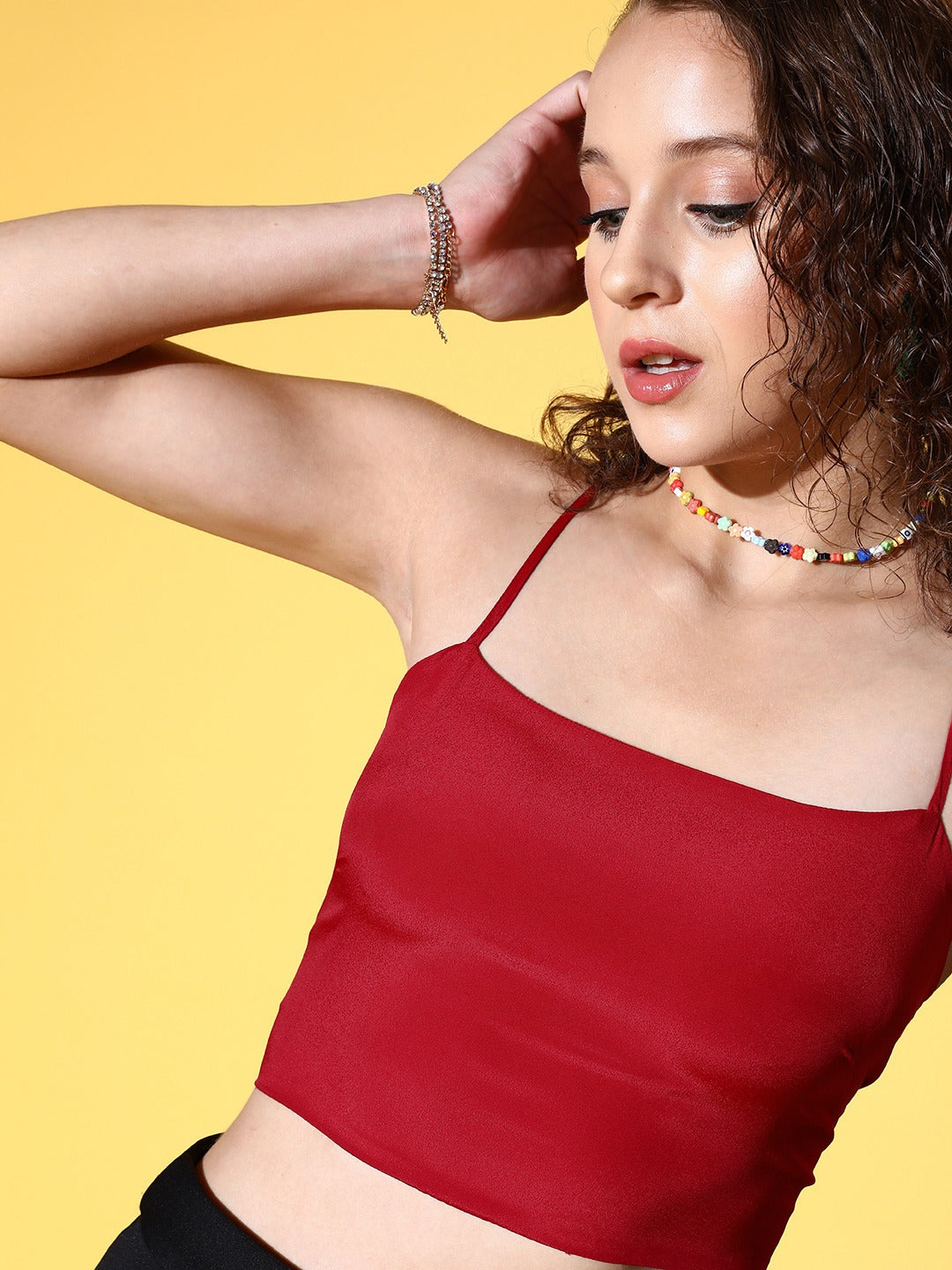 Red holds up the bold aura and never fails to catch people's eyes, thus it's high time to invest in this captivating Red Solid Satin Styled Back Crop Top designed by Berrylush. Adorned with a shoulder strap design that gives this top a supportive structure with a broad and square definition to your beautiful neckline. Detailed with tie-ups surface styling that offers contouring and a comfortable silhouette with a majestic garnishing touch. Also, the woven detailing amp up the durability and breathability of this top. Partner up this crop top over a mini black skirt, a pair of cute black sandals, and a stylish clutch to create a fascinating final look for your next date.