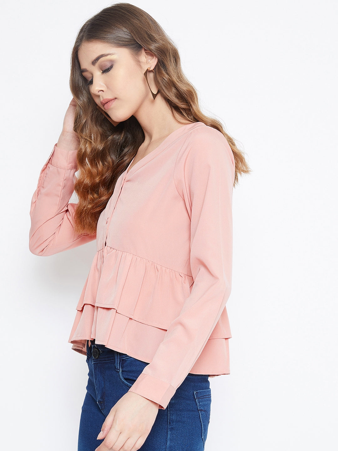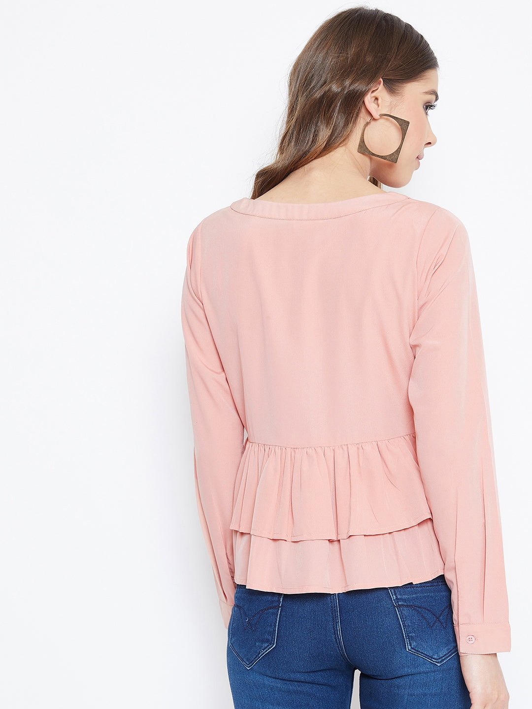 • Solid pink colour gives this peplum top a gorgeous appearance