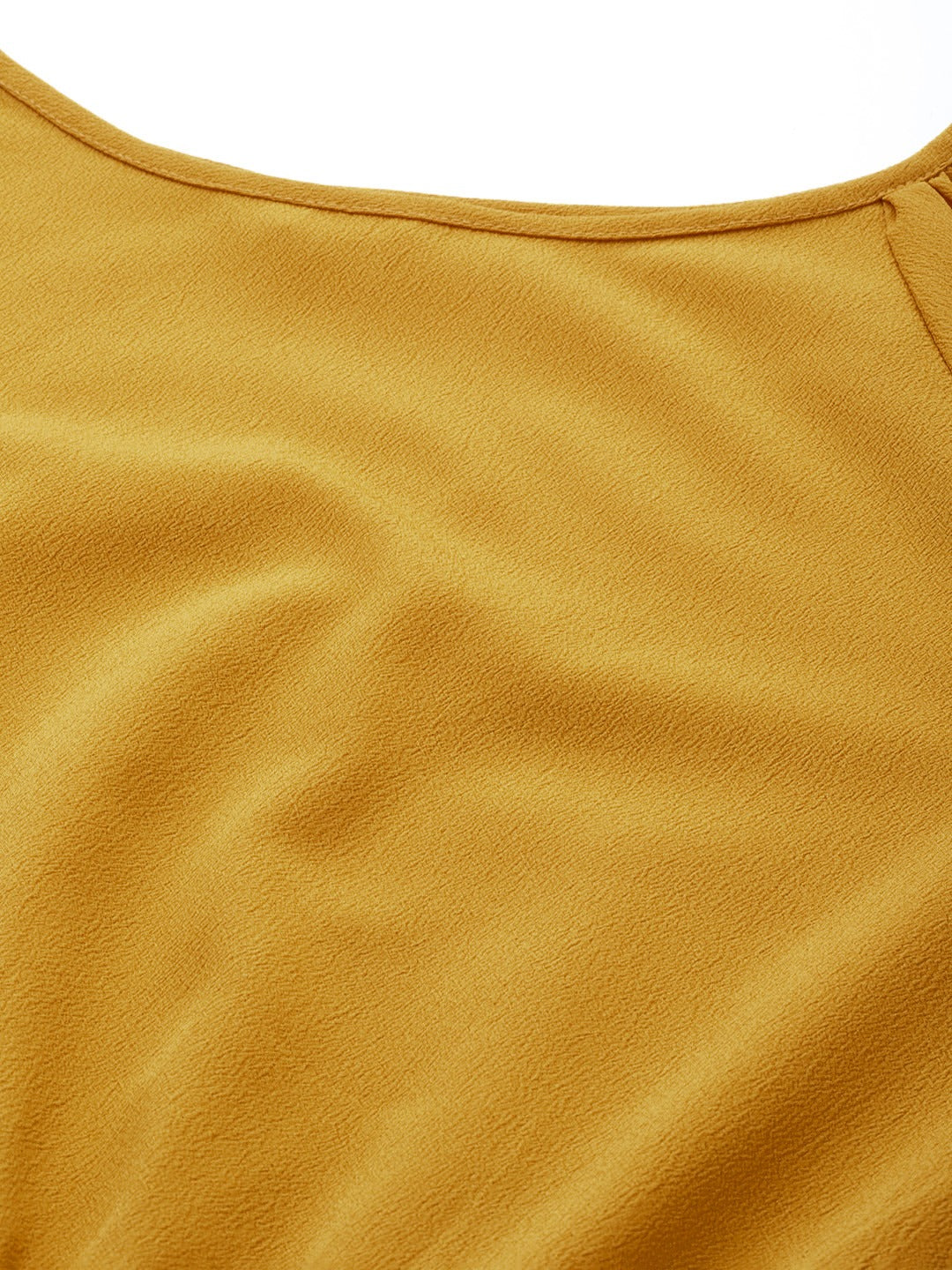 • Yellow shade with solid pattern gives this top bedazzling look with a classy aura
