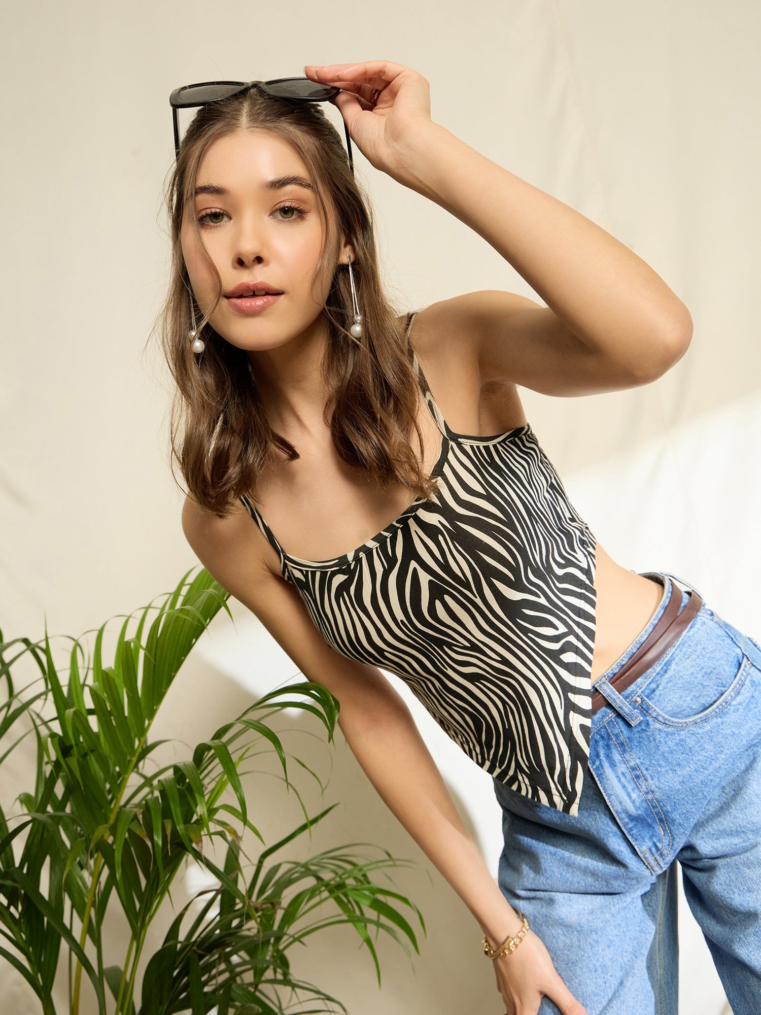 Unleash your inner fashionista with the Berrylush White & Black Animal Printed Square Neck Sleeveless Hanky Hem Knitted Crop Top. This stylish piece effortlessly combines comfort and trendiness, making it a must-have for your everyday outings. Crafted from soft cotton, this top features a chic square neckline and a unique hanky hem that adds flair to any outfit. The eye-catching animal print in timeless black and white allows you to express your bold personality while keeping it classy. Its sleeveless design ensures breathability, perfect for those warm days when you want to stay cool yet fashionable. The opaque fabric maintains modesty without sacrificing style - pair it with high-waisted jeans or shorts for an effortless look that turns heads. Make this versatile crop top the centrepiece of your casual ensembles! Grab yours today - your new go-to favourite is just one click away!