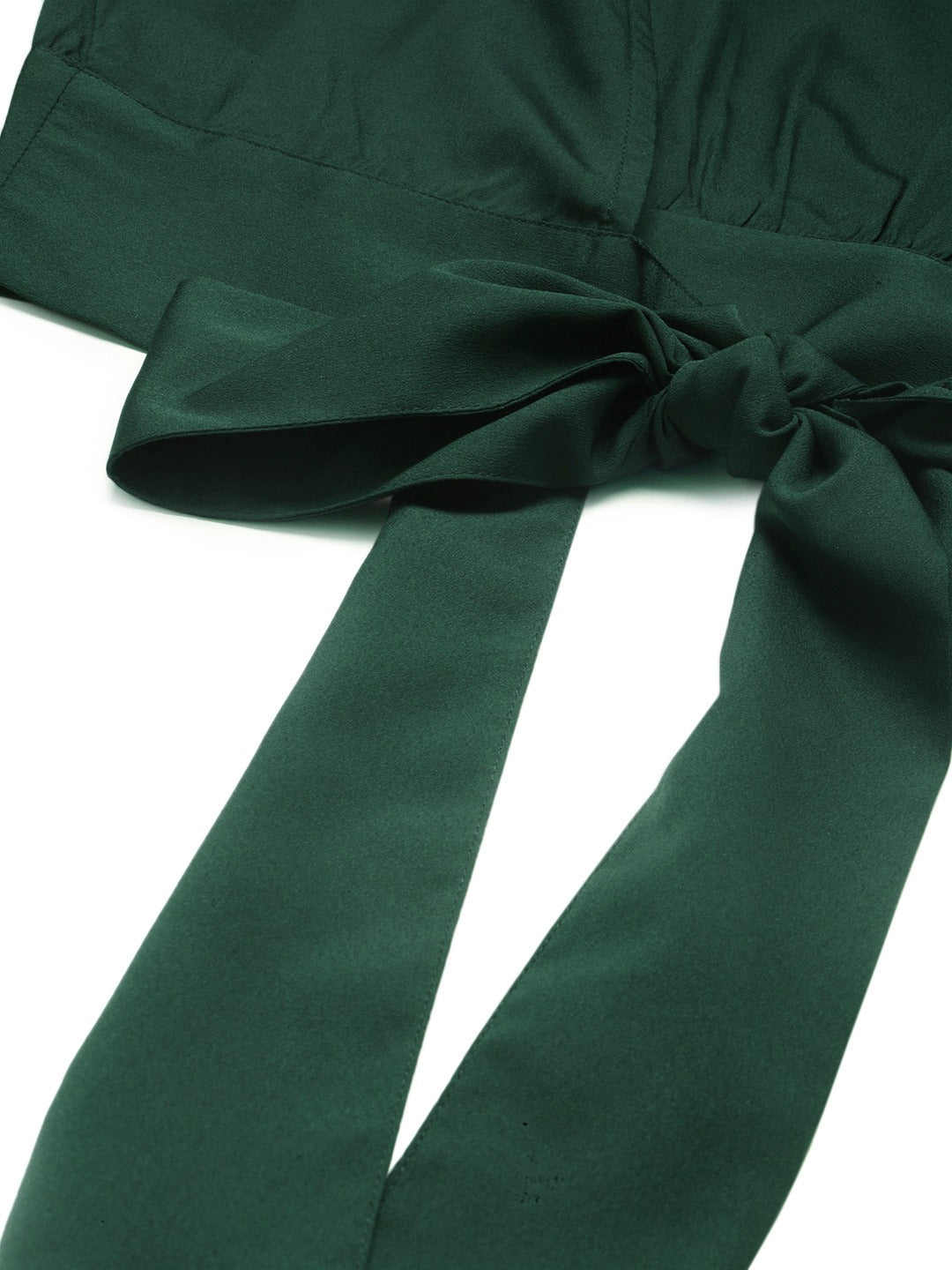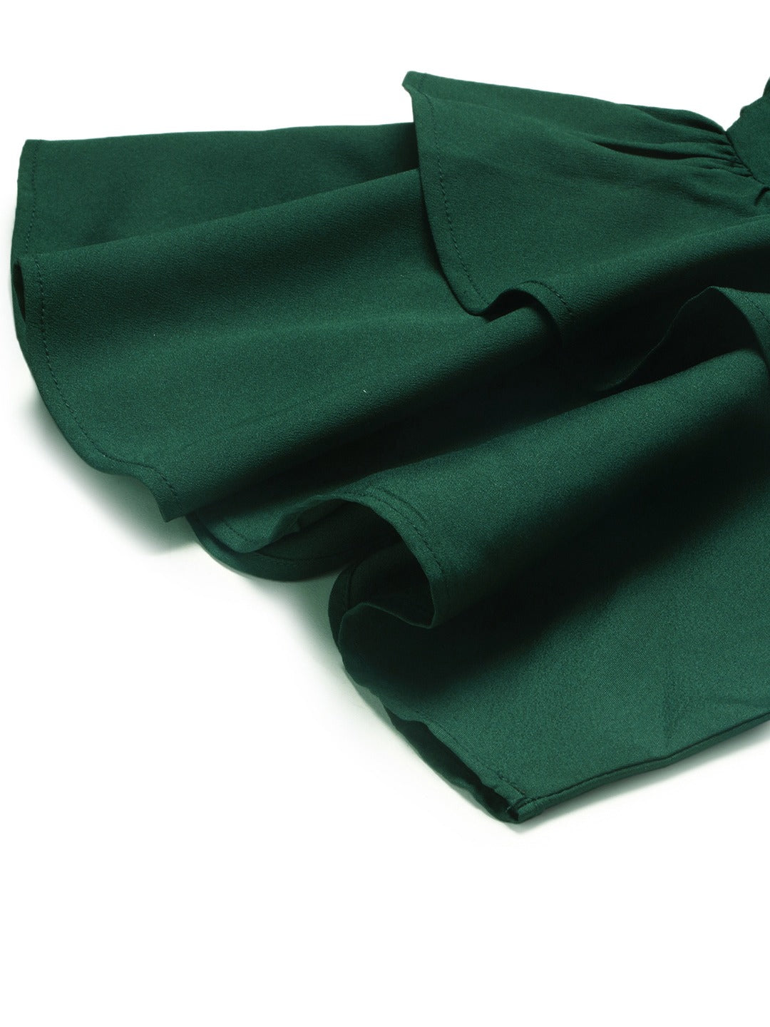 Berrylush Women Solid Green Flutter Sleeves Blouson Top