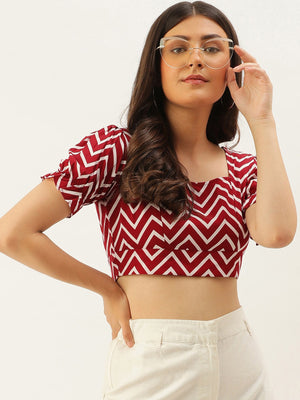 Berrylush Women Maroon Geometric Printed Crop Top