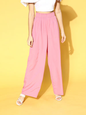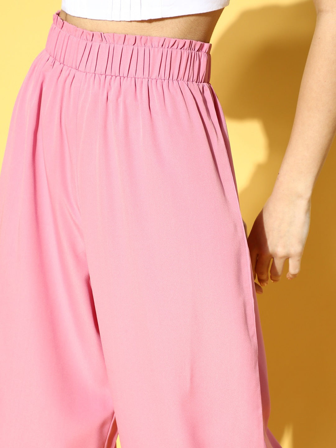 Berrylush Women Solid Light Pink Flare Fit High-Rise Waist Plain Trousers