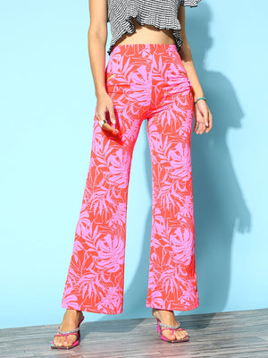 Opt for a stylish ensemble with the perfect blend of modernity and boho-chic essence by selecting these adorable Red Floral Printed High-Rise Flared Regular Trousers introduced by Berrylush. Decorated with a cinematic combination of red and pink floral print that gives these trousers mesmerizing appearance with a tropical vibe. Designed with a flat front that lends these trousers a straight silhouette to create the perfect slim look. In addition, the slip-on closure offers ease wearing feature with a comfortable fit and sleek finish. Wear these trousers with a crop top, a pair of pink platform heels, matching earrings, and a cute shoulder bag to get a bewitching look for your next outing.