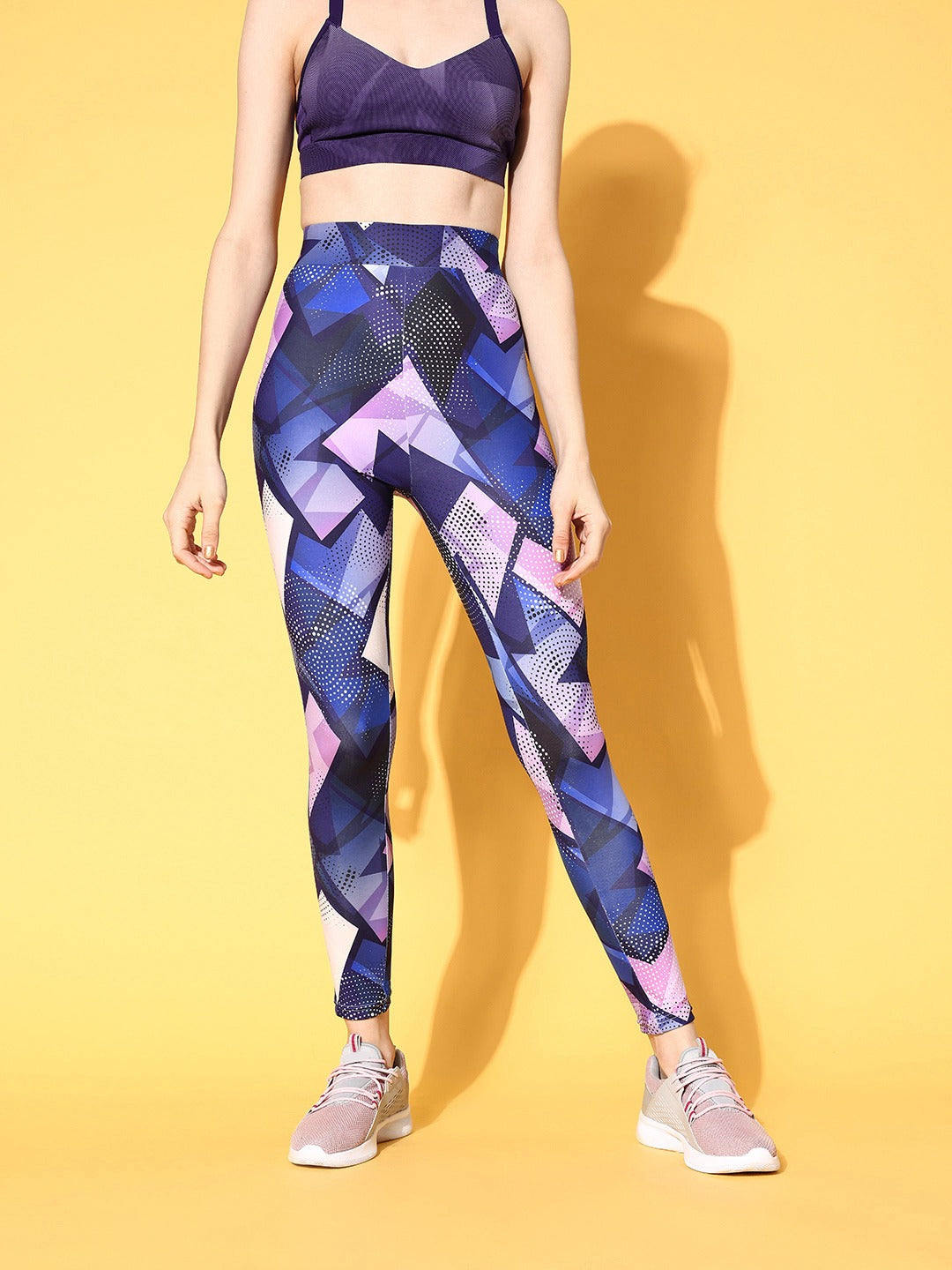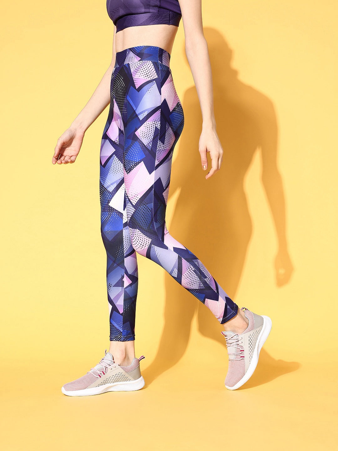Berrylush Women Purple Abstract Printed Super Stretchy & High Waisted Sports Tights