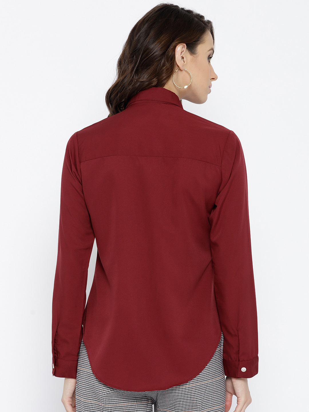 Berrylush Women Solid Maroon Spread Collar Neck Button Placket Curved Regular Shirt