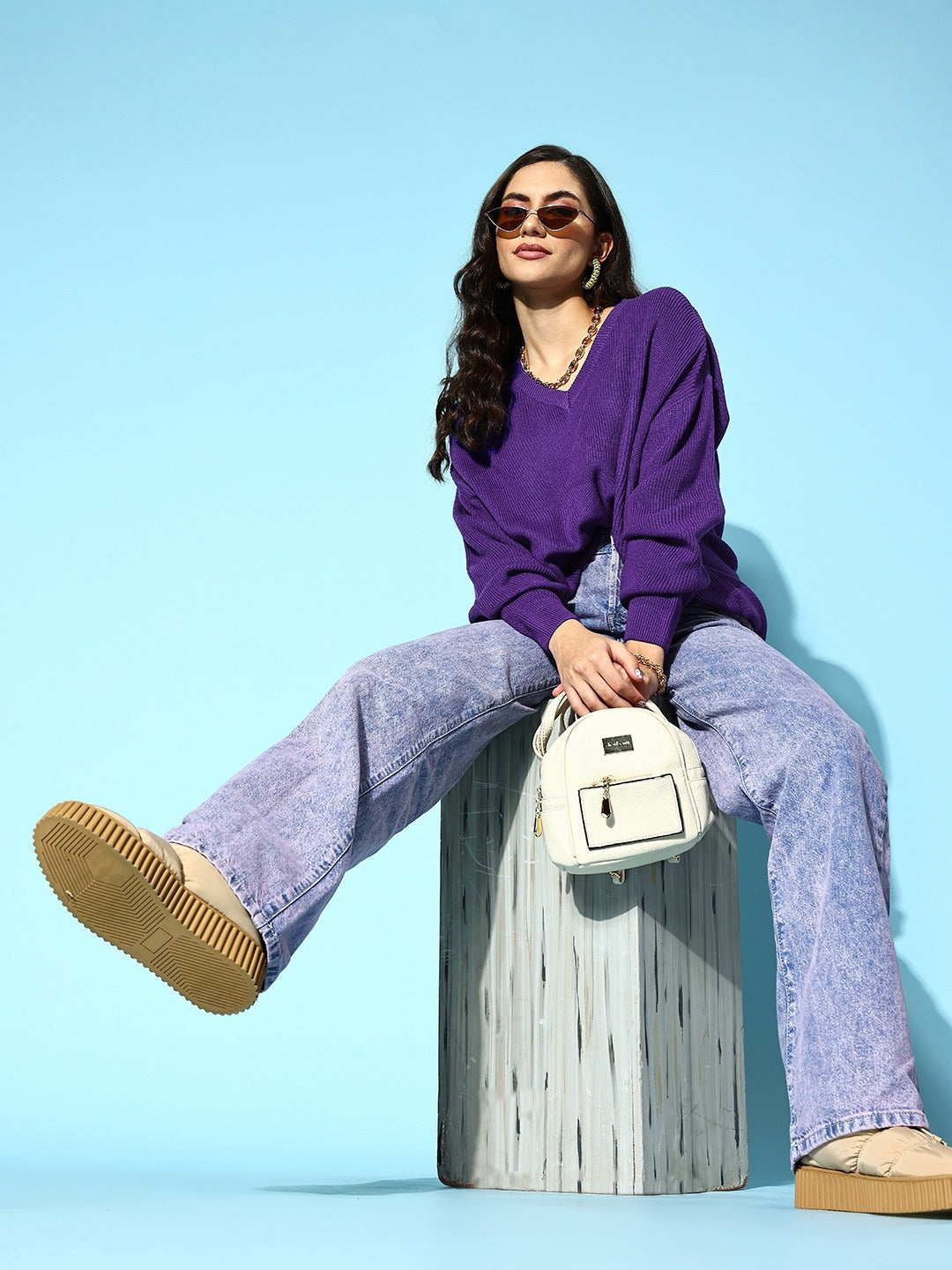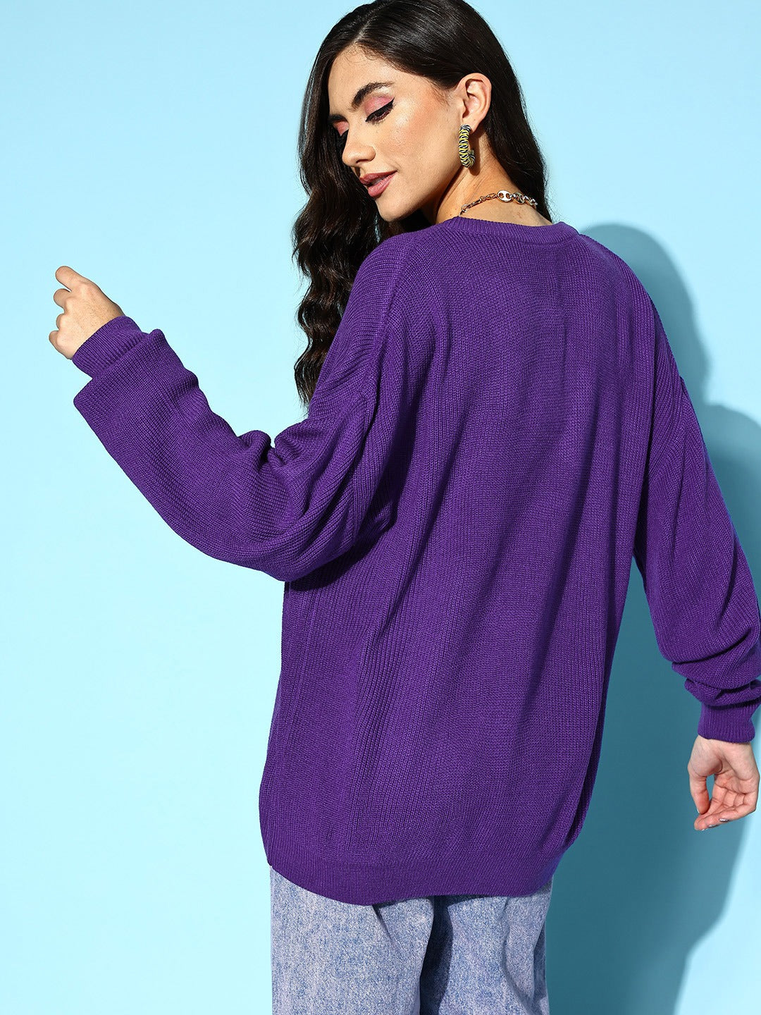 Invest in a timeless and polished signature style for your go-to layer option this winter season by opting for this pretty Solid Purple V-Neck Ribbed Hem Regular Pullover from Berrylush. Elegantly made from premium quality polyester fabric that lends this pullover maximum comfort with a soft touch to your skin along with swear-wicking properties. The ribbed hemline gives this pullover a unique appearance with a warm feel. Also, the regular length offers this pullover a chic finish with appropriate coverage for your upper body. Complete your look flawlessly by wearing this pullover with your favourite jeans, cool sneakers, a cute pendant, and a sassy back bag.