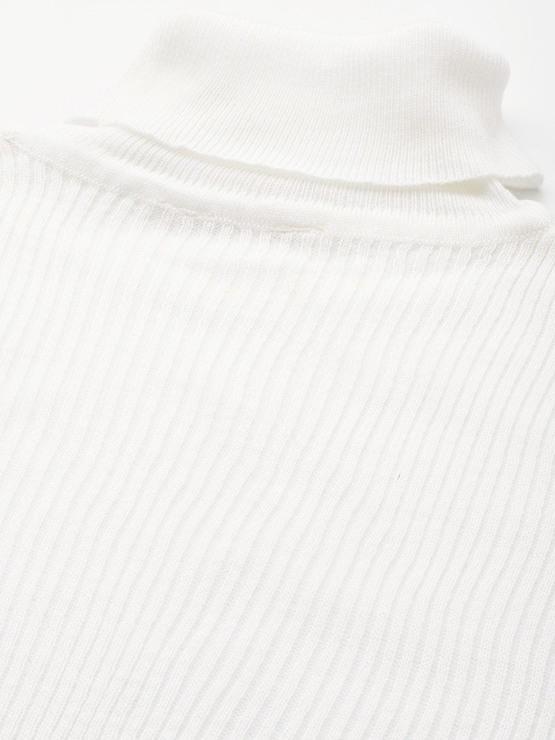 Berrylush Women Solid White Turtle Neck Acrylic Ribbed Hem Regular Sweater