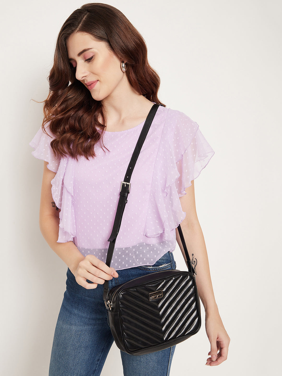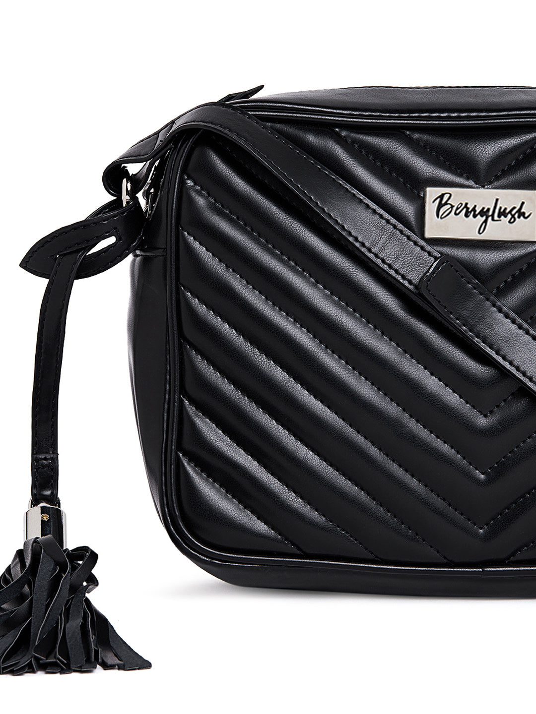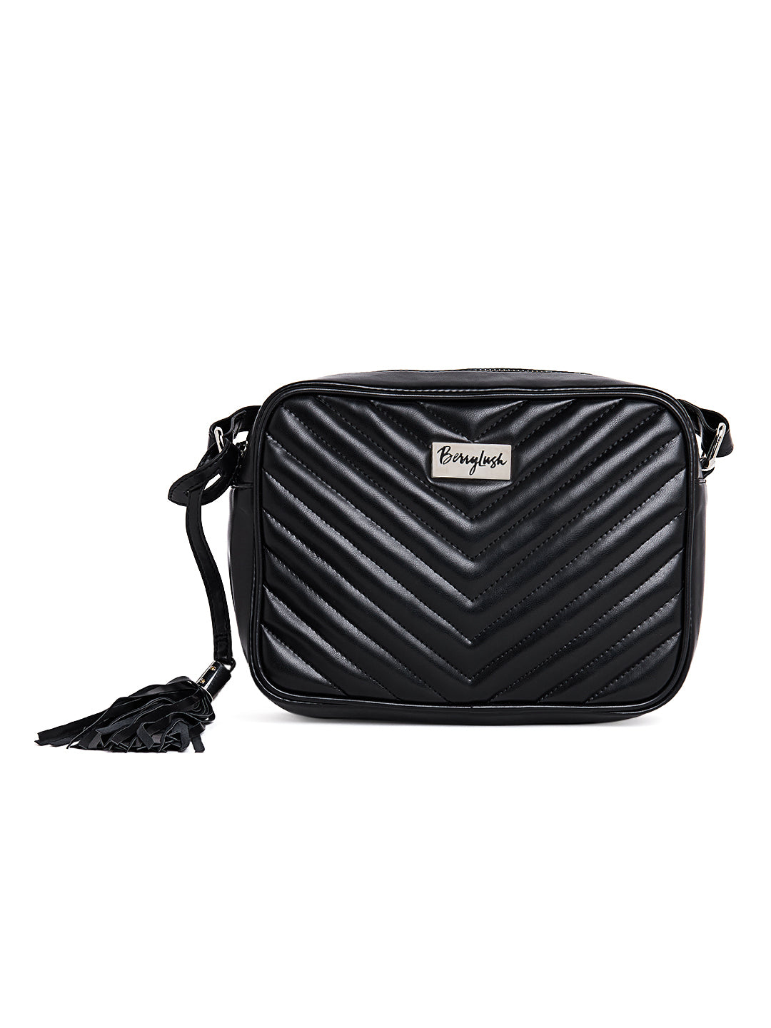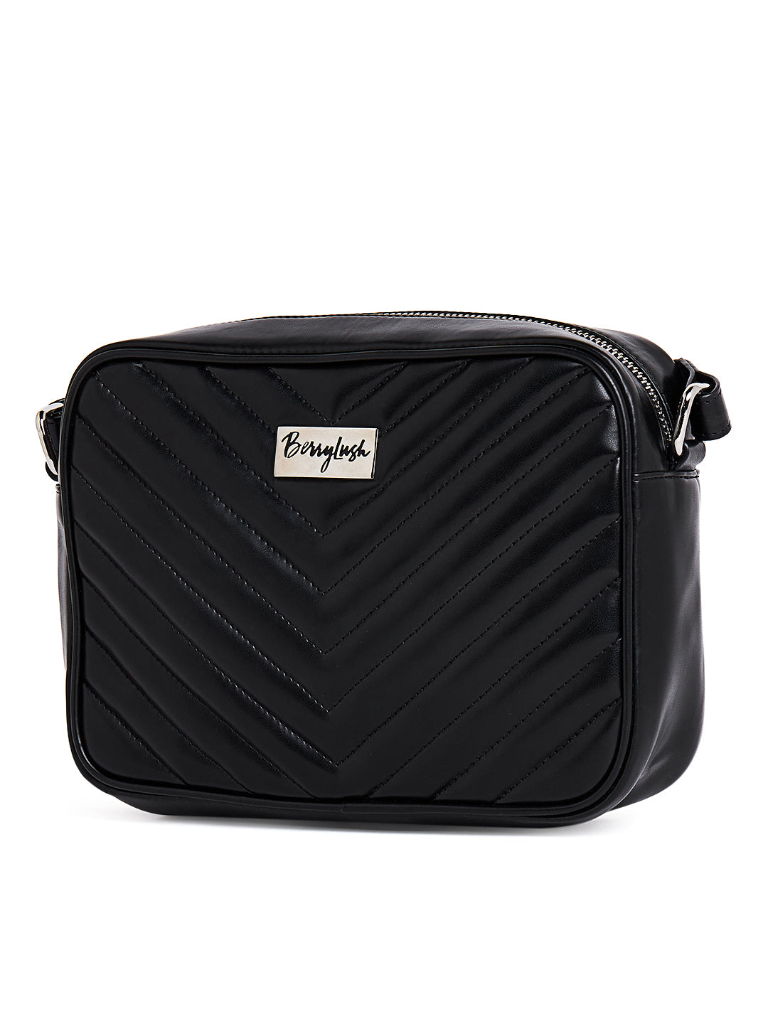 Berrylush Women Solid Black Detachable Sling Strap PU Quilted Smart Casual Regular Sling Bag