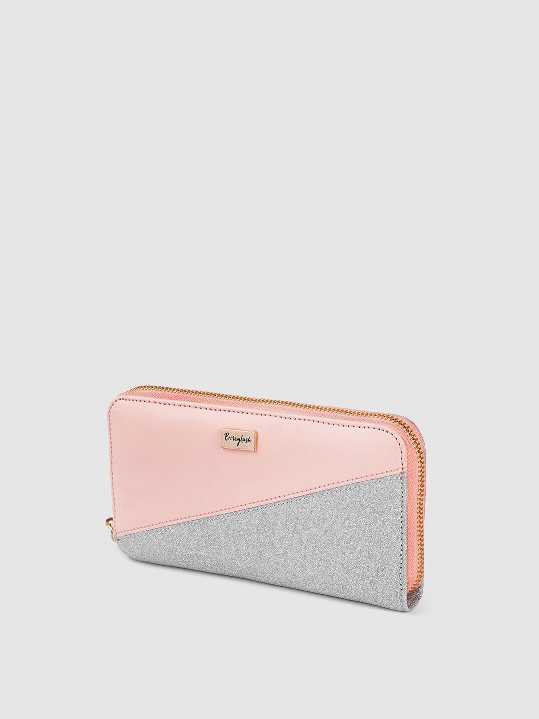 Berrylush Women Pink & Silver Colourblocked Pattern PU Zipper Tasselled Around Long Wallet