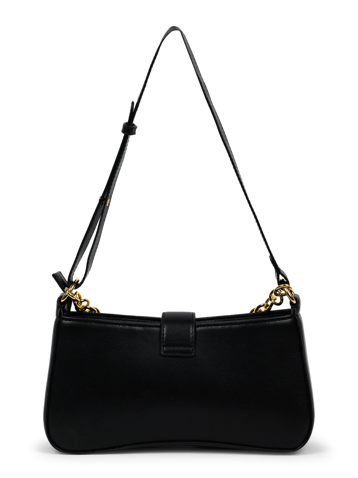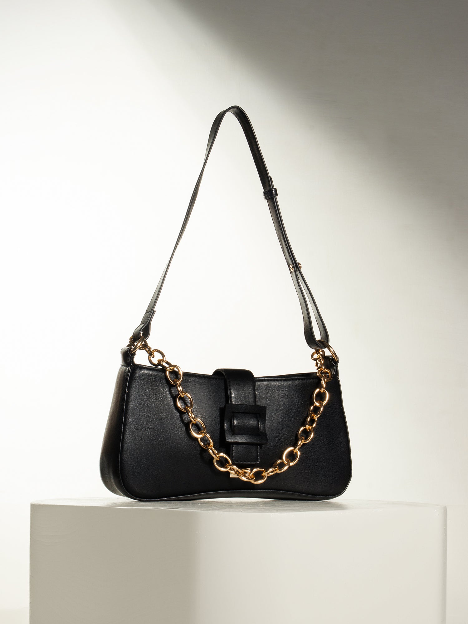Berrylush Women Solid Black Synthetic Leather Chain Strap One-Handle Zipper-Up Shoulder Bag