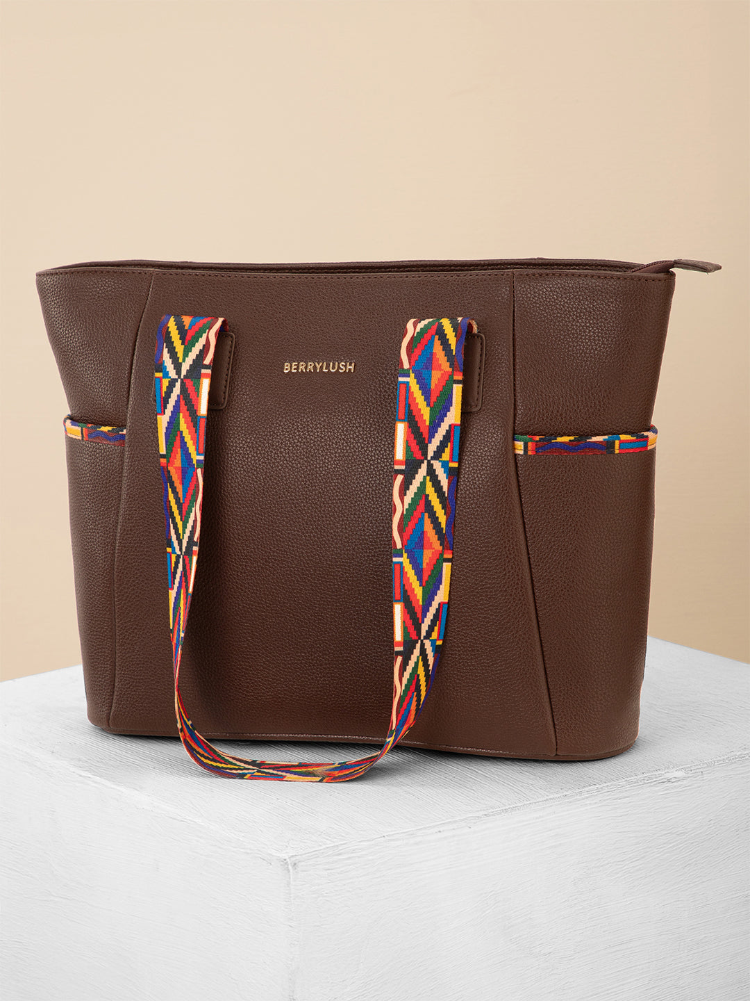 Berrylush Women Brown Textured Two Handles Casual Tote Bag