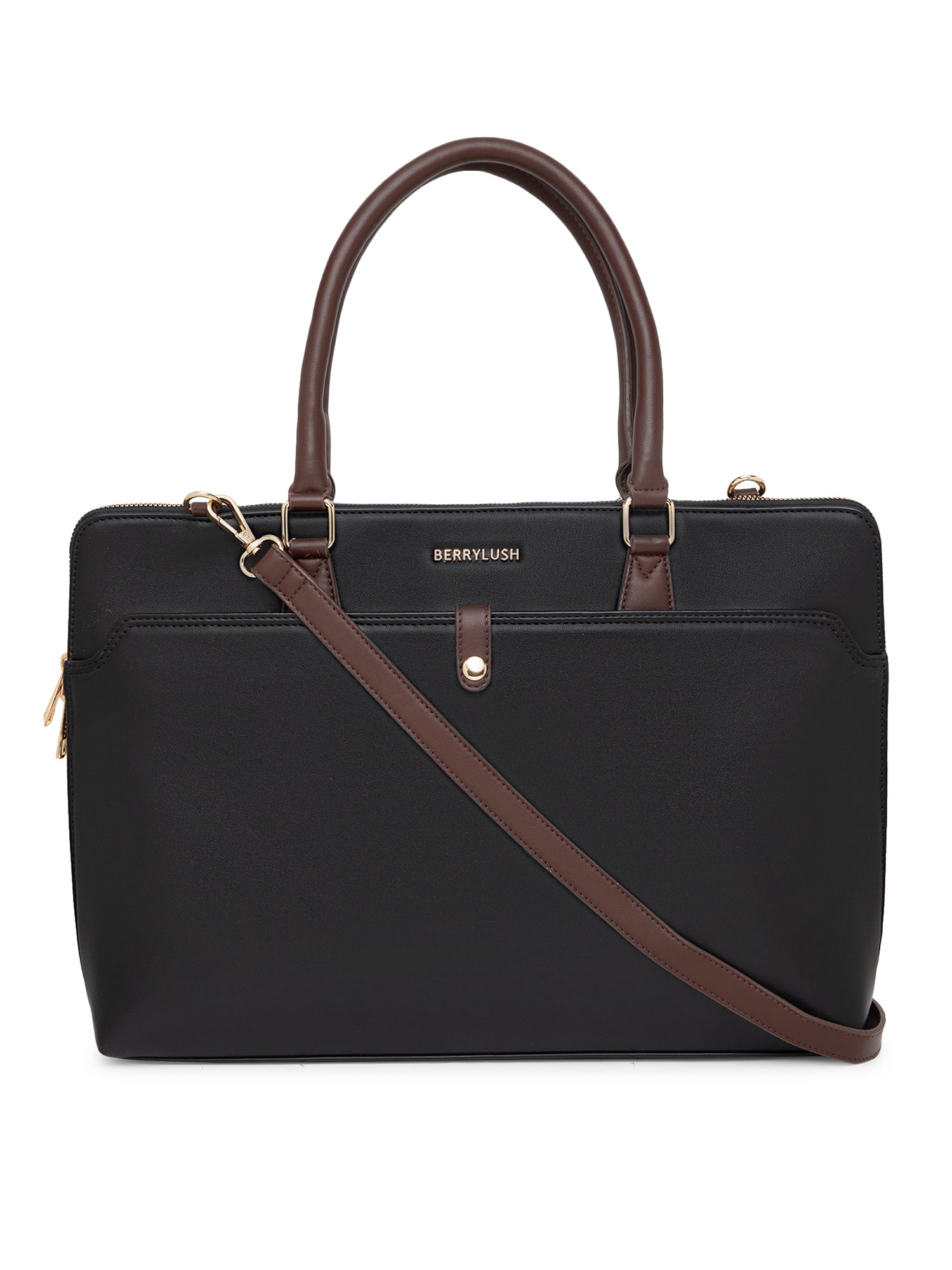 Berrylush Women Black Solid Two Handle Casual Laptop Bag