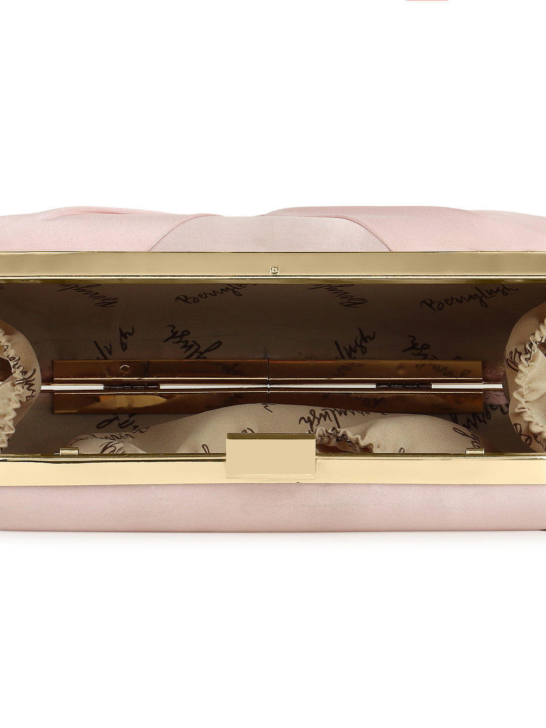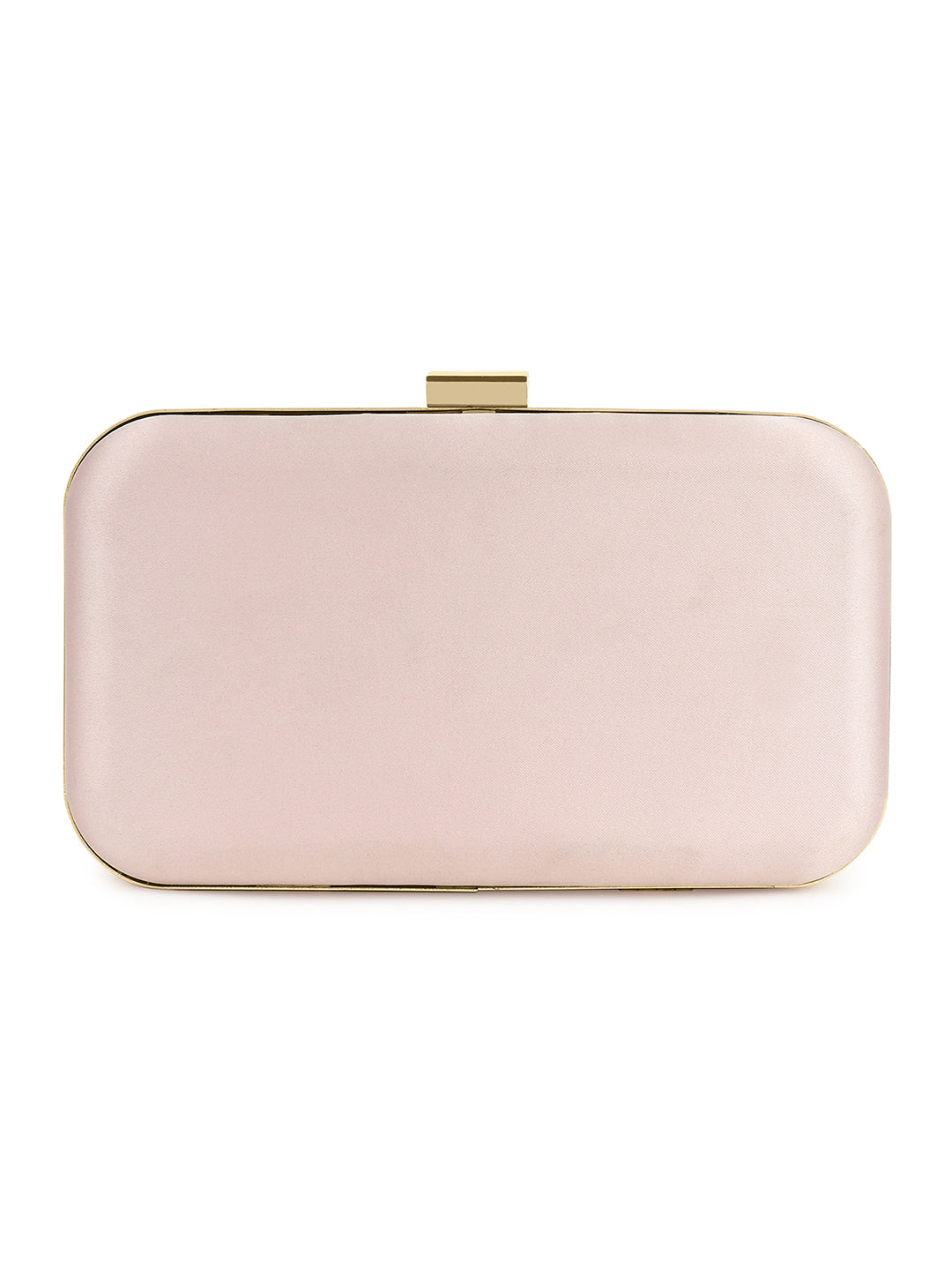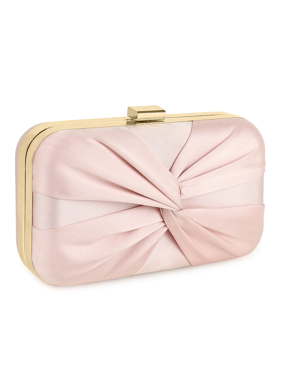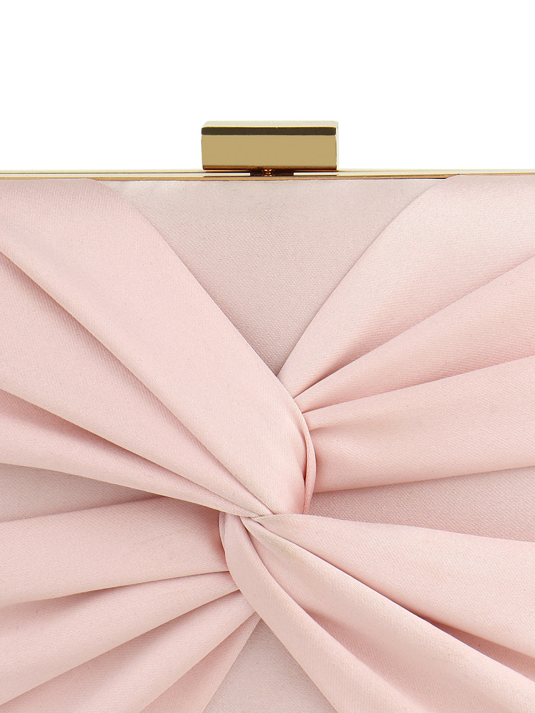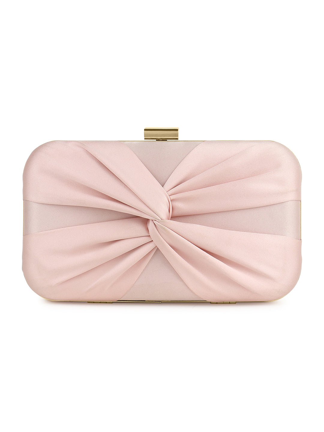 Berrylush Women Solid Pink Satin Finished Front Bow Click Box Clutch