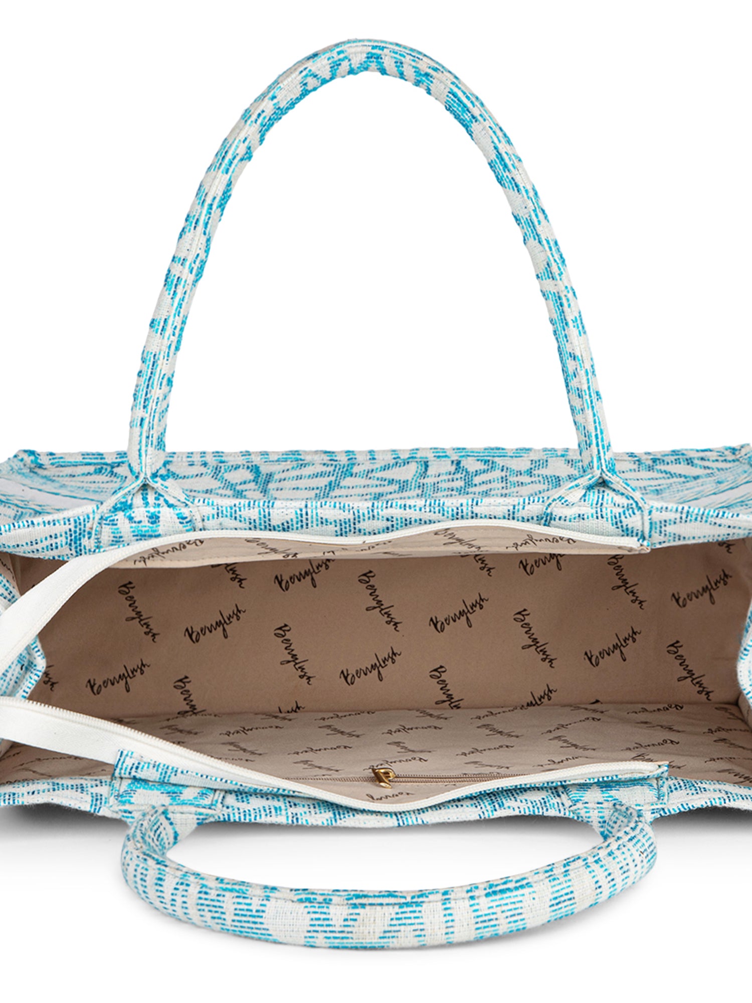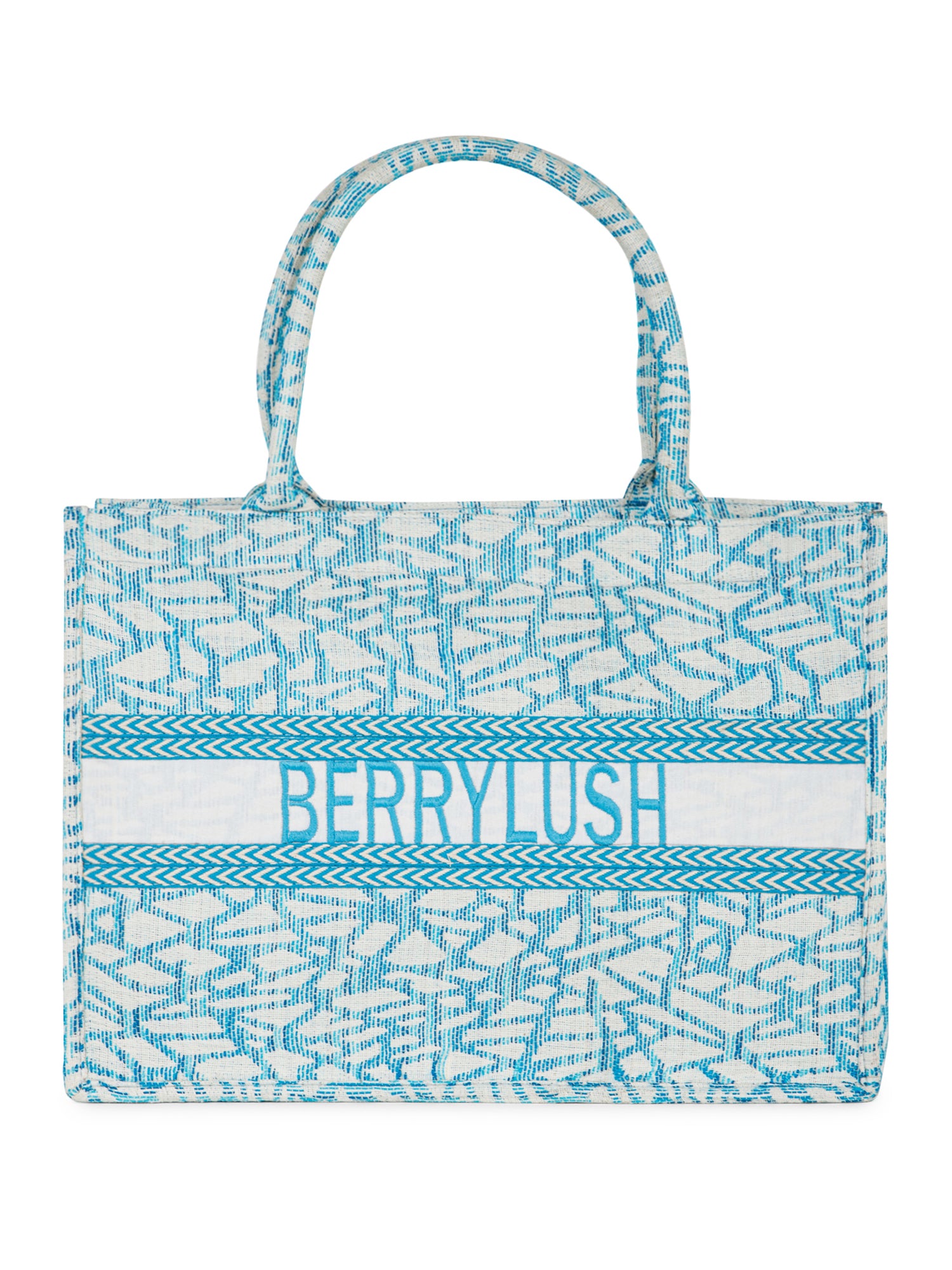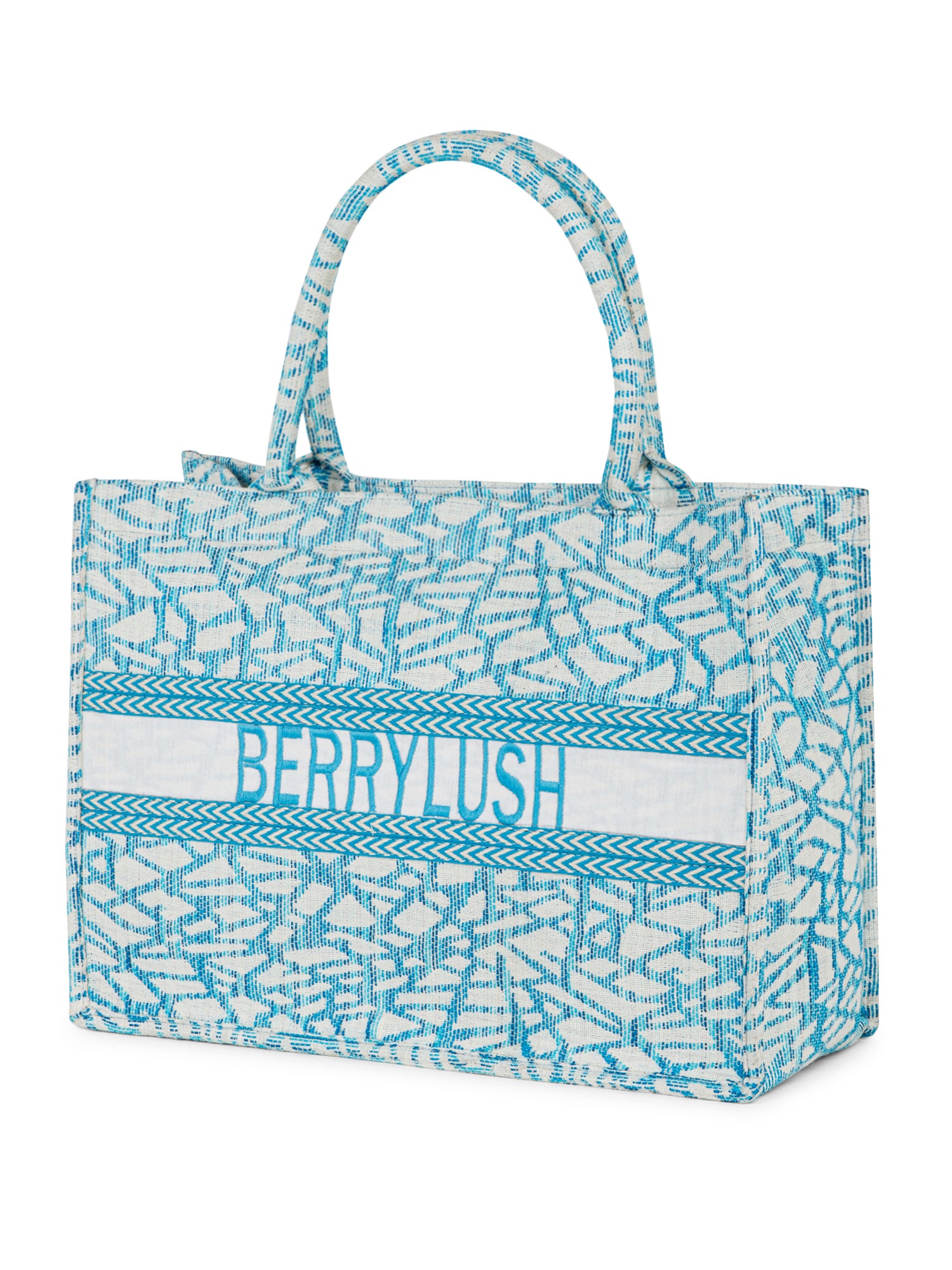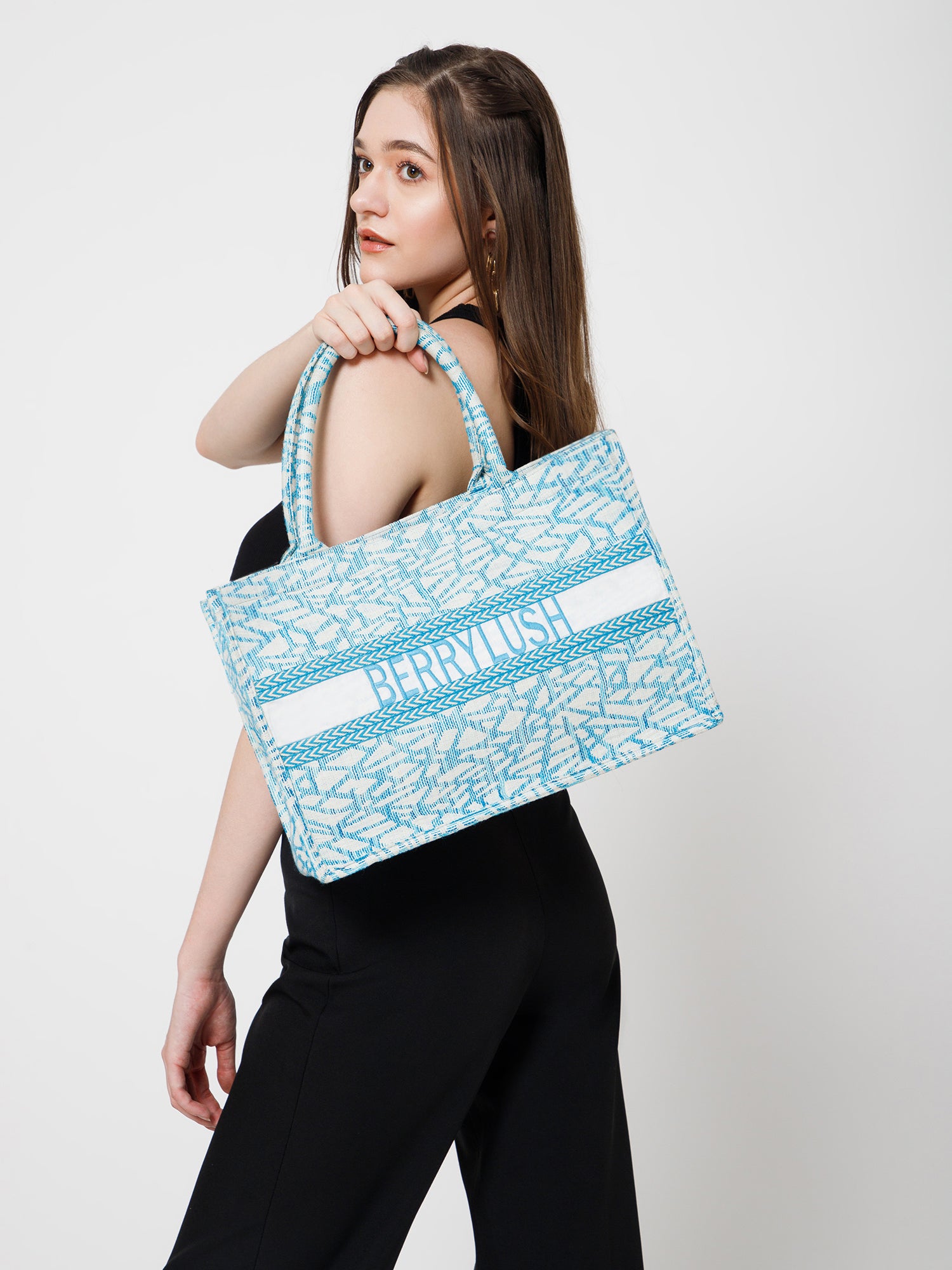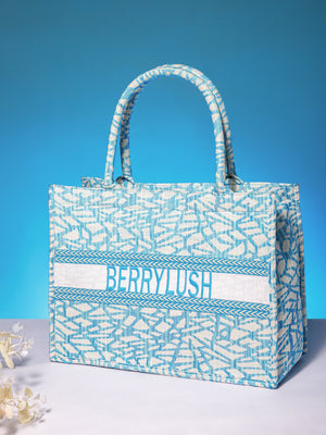 Berrylush Women Blue Self Design-Embroidered Tote Bag