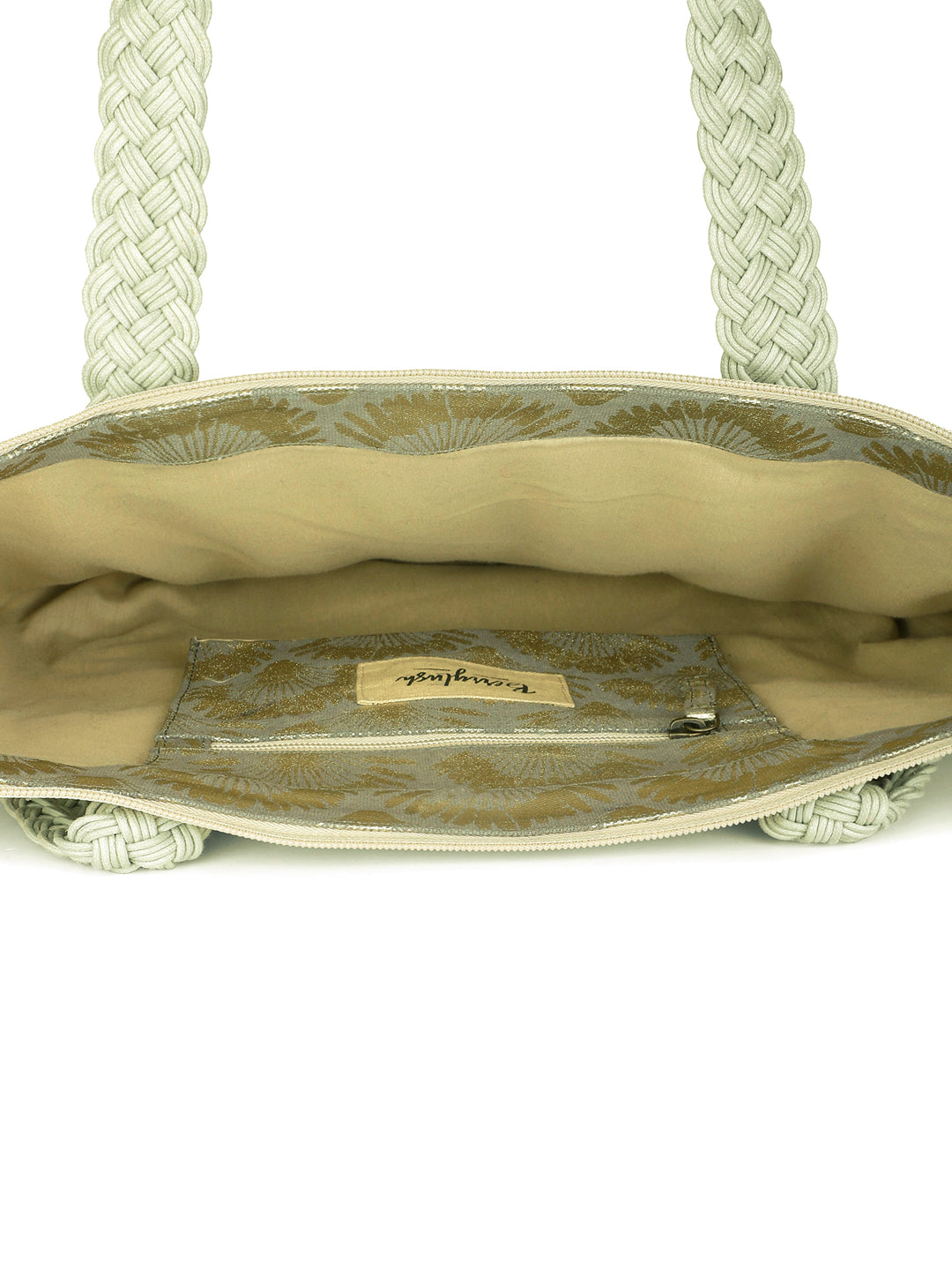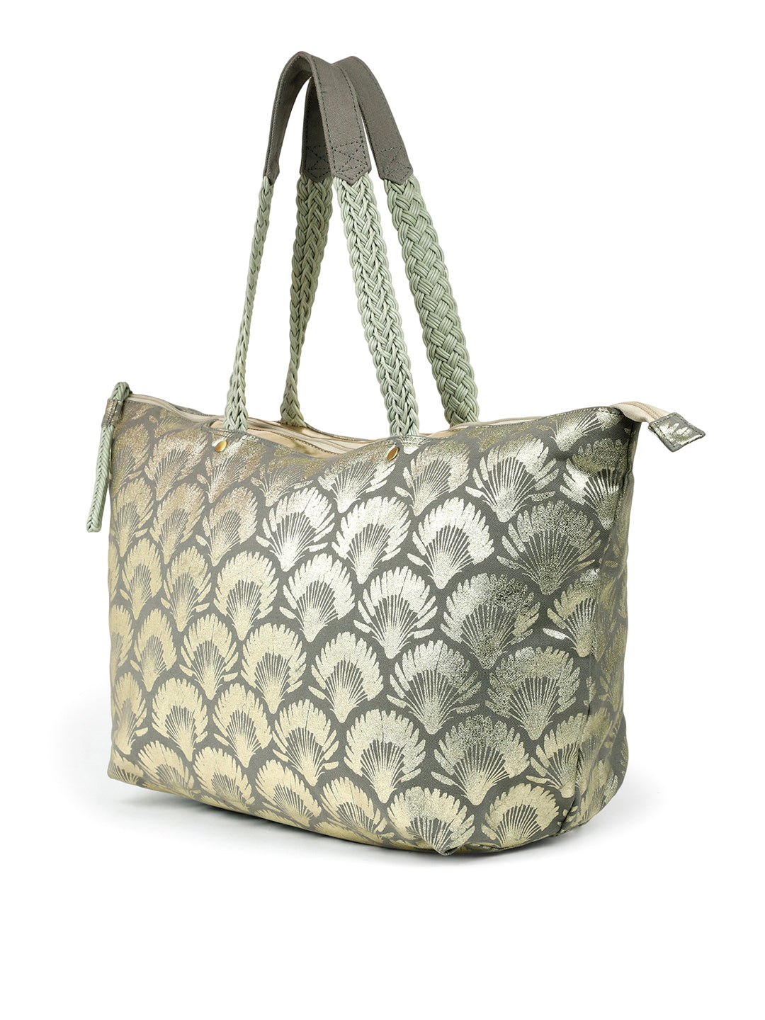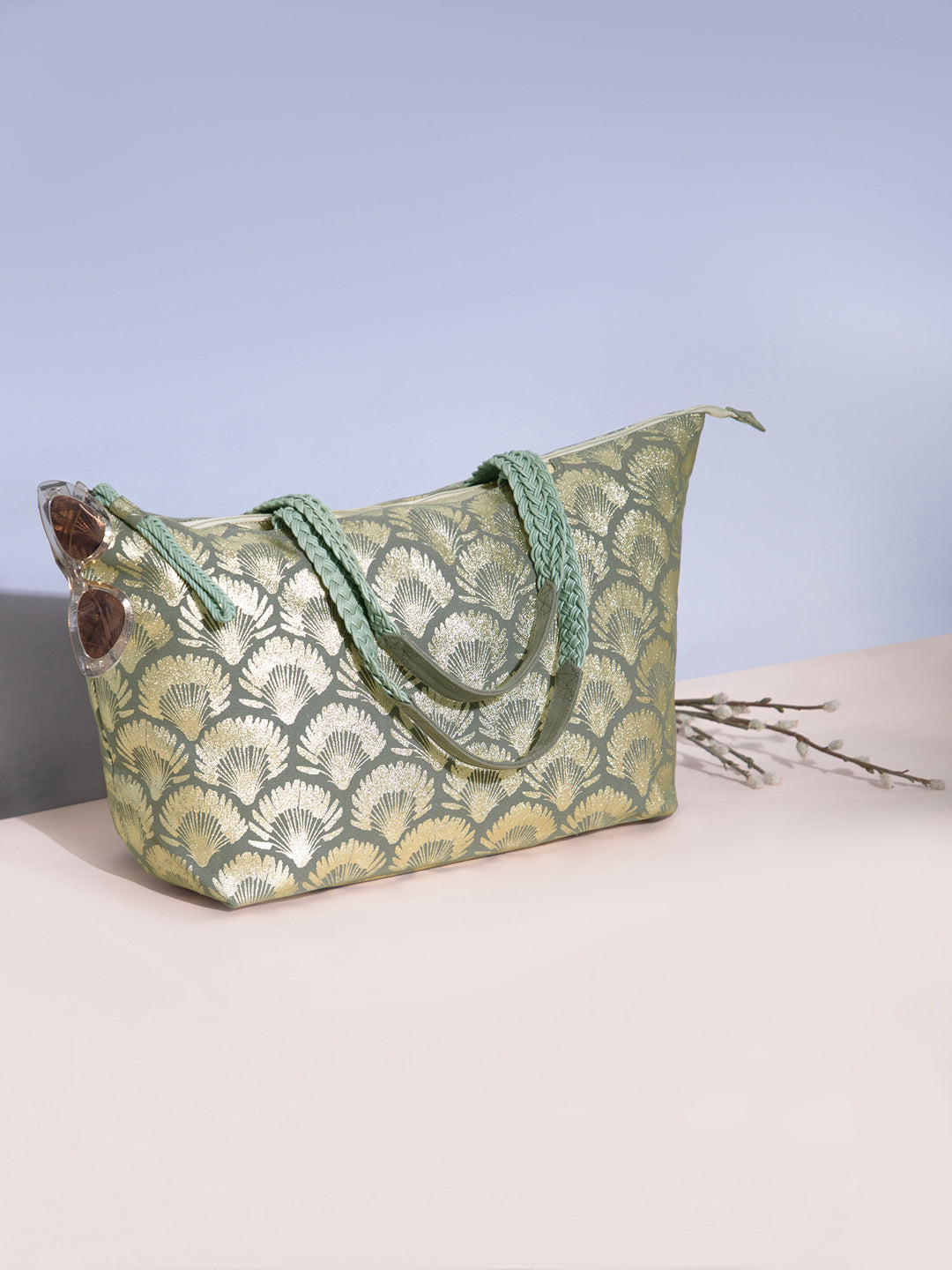 Berrylush Women Grey & Silver Floral Printed Canvas Zipper-Up Oversized Tote Bag