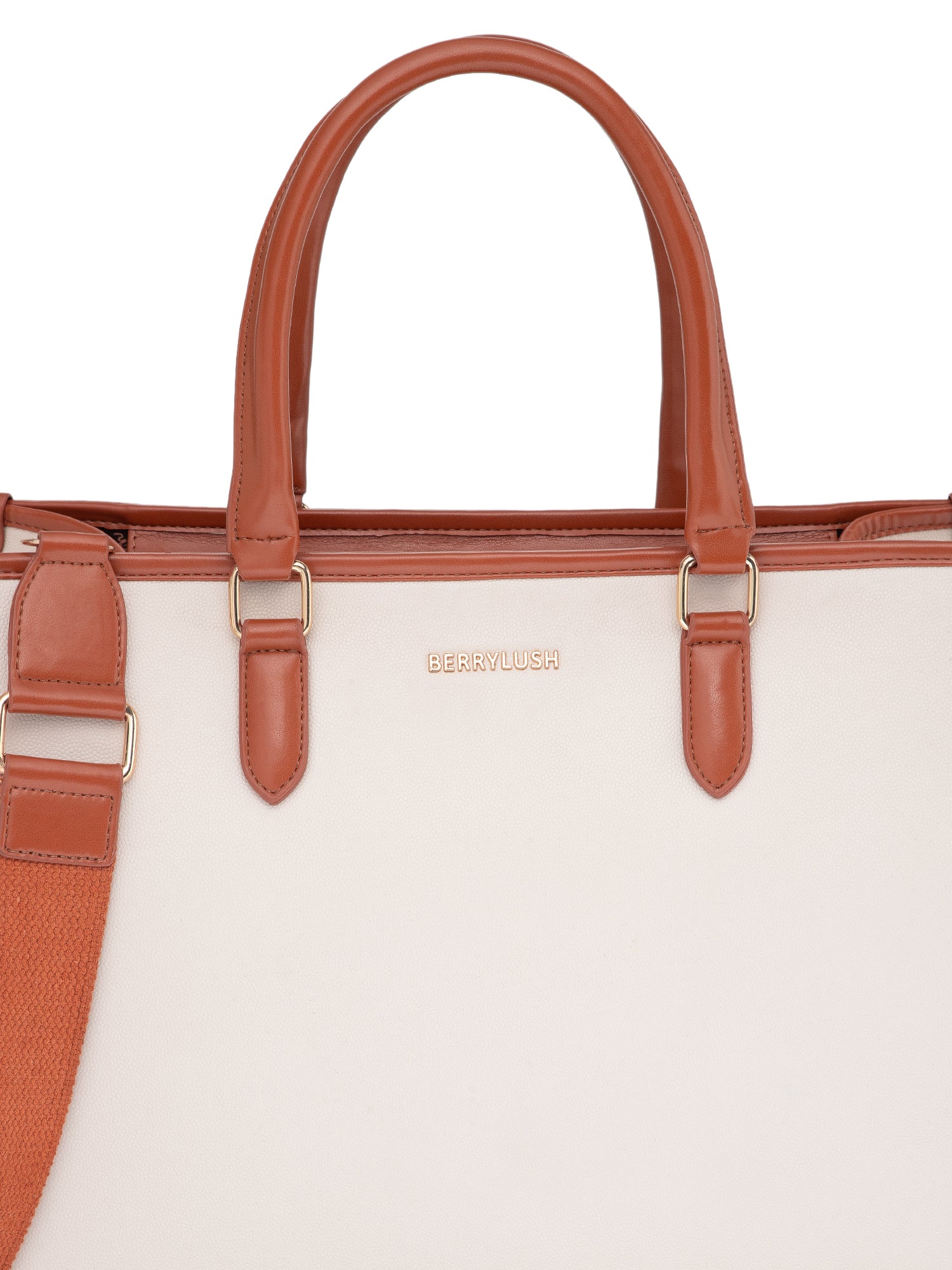 Berrylush Women Beige Solid Two Handles Smart Casual Tote Bag