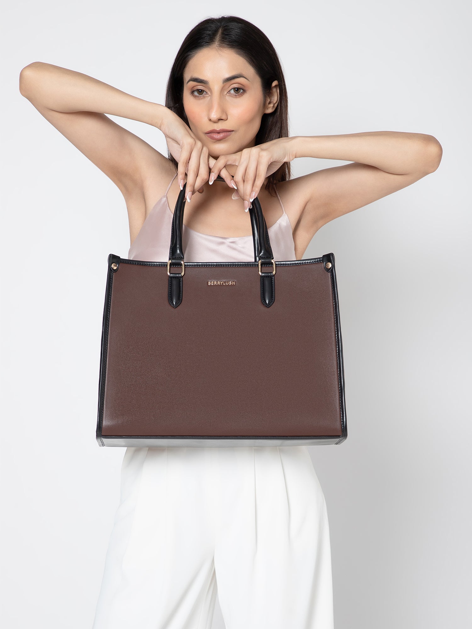 Berrylush Women Brown Solid Detachable Sling Strap Casual Tote bag