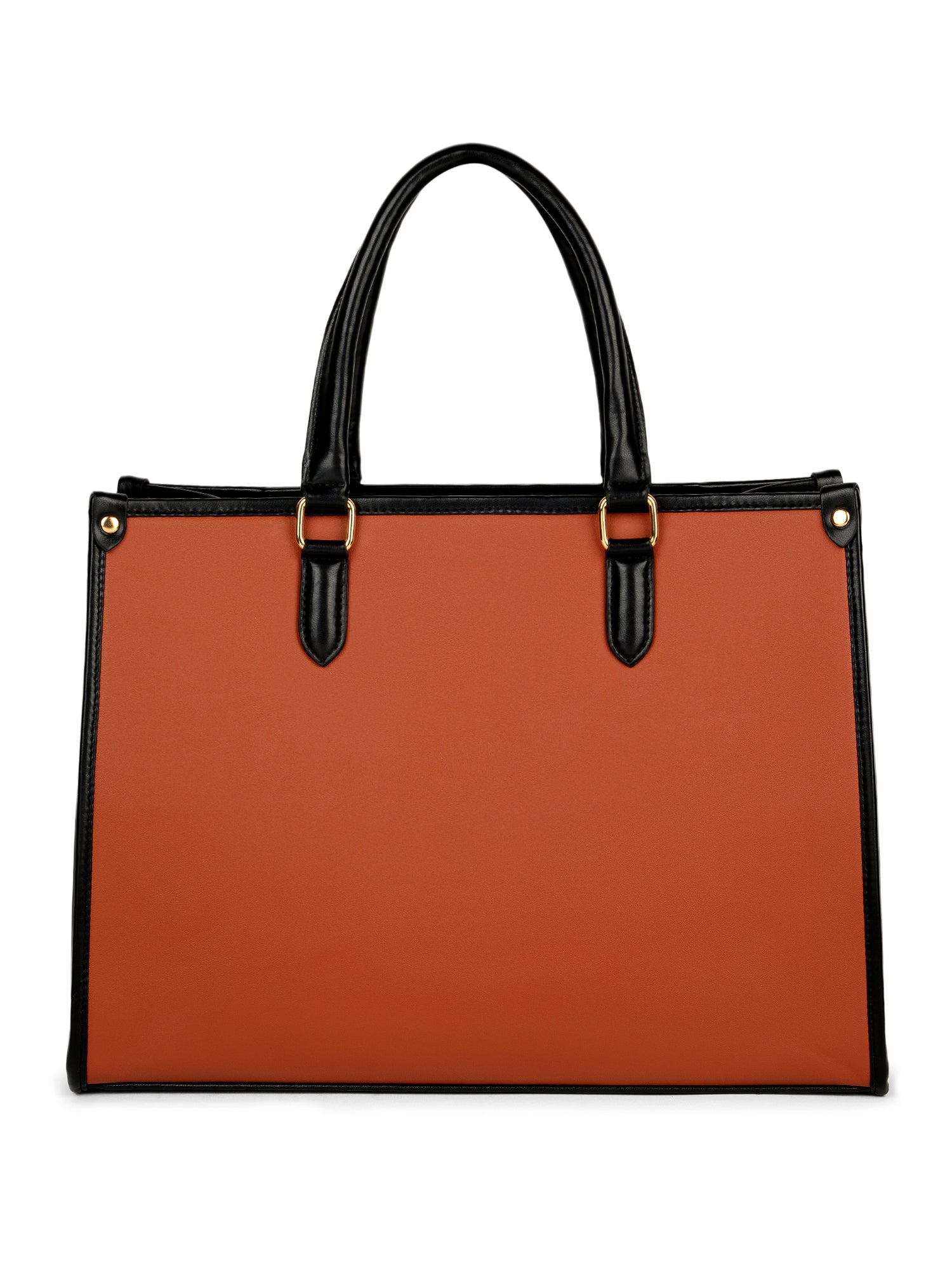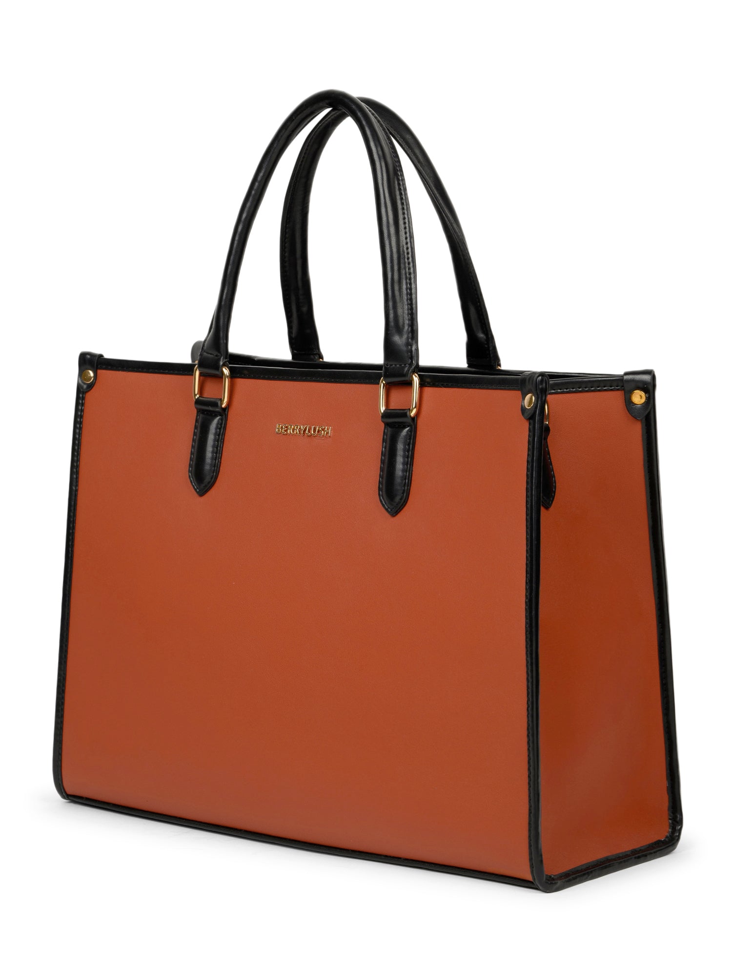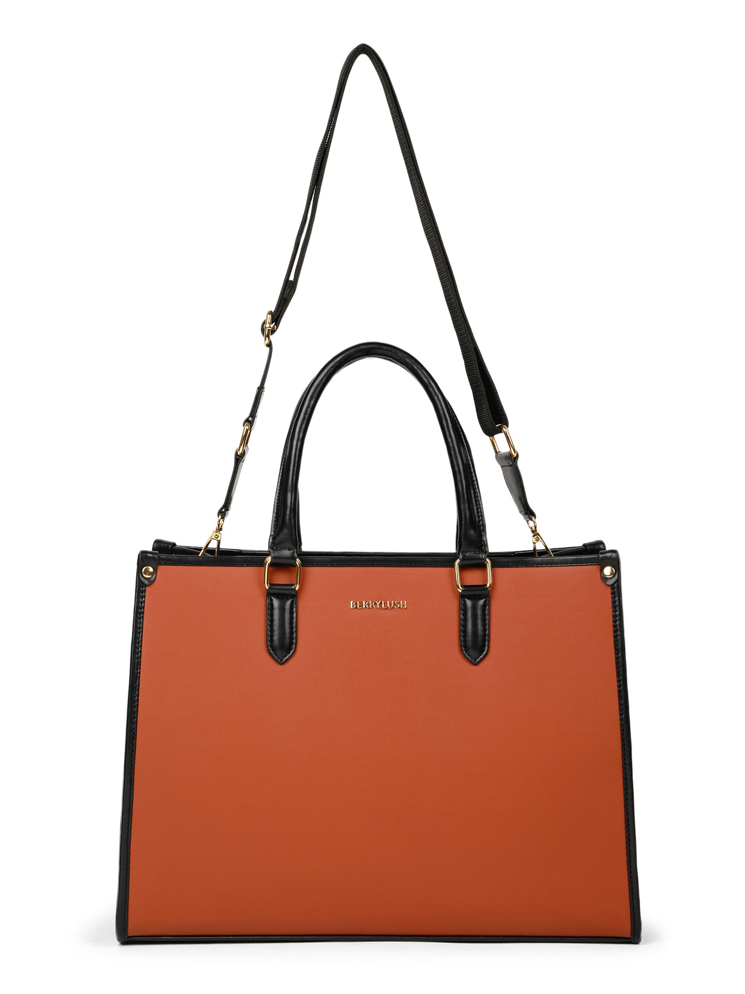 Berrylush Women Solid Tan Synthetic Leather Two-Handles Zipper-Up Detachable Sling Strap Embellished Tote Bag