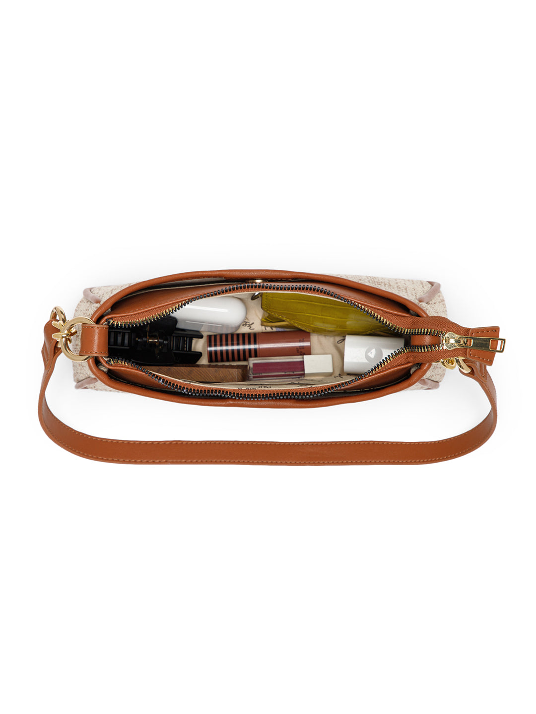 Berrylush Women Cream Checked One Handle Smart Casual Regular Shoulder Bag