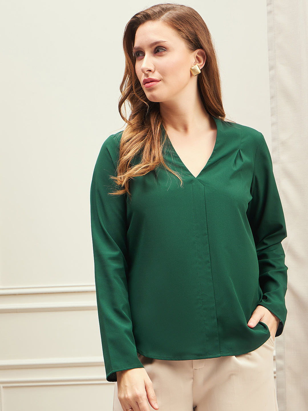 - Green shade and solid pattern give this top a majestic look with a classy vibe