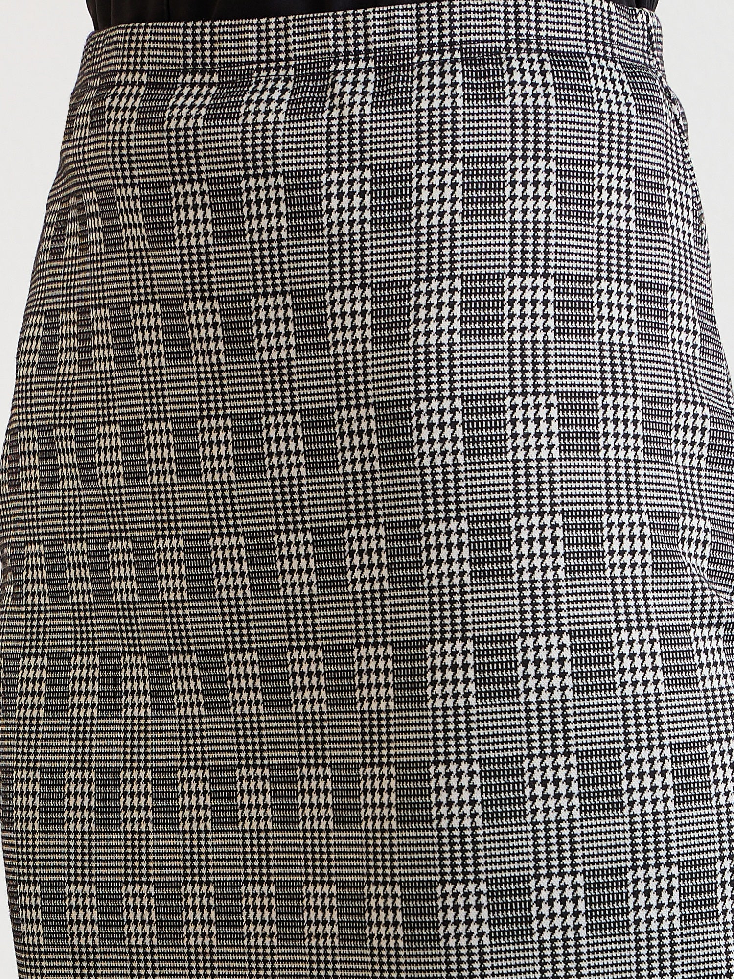 Berrylush BIZwear Women Black & White Checked Print High-Rise Waist Slip-On Straight Hem Knitted Pencil Midi Skirt
