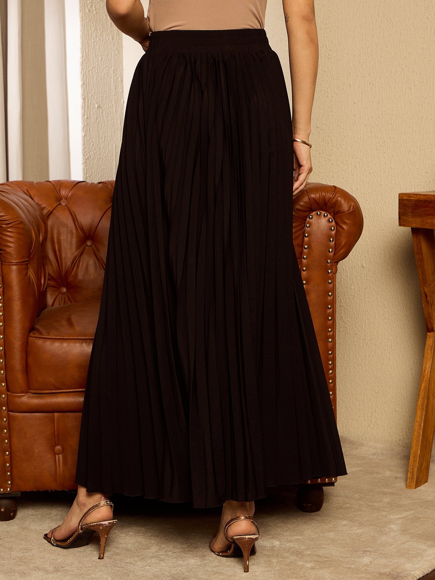 Berrylush BIZwear Women Solid Black High-Rise Waist Slip-On Pleated A-Line Maxi Skirt