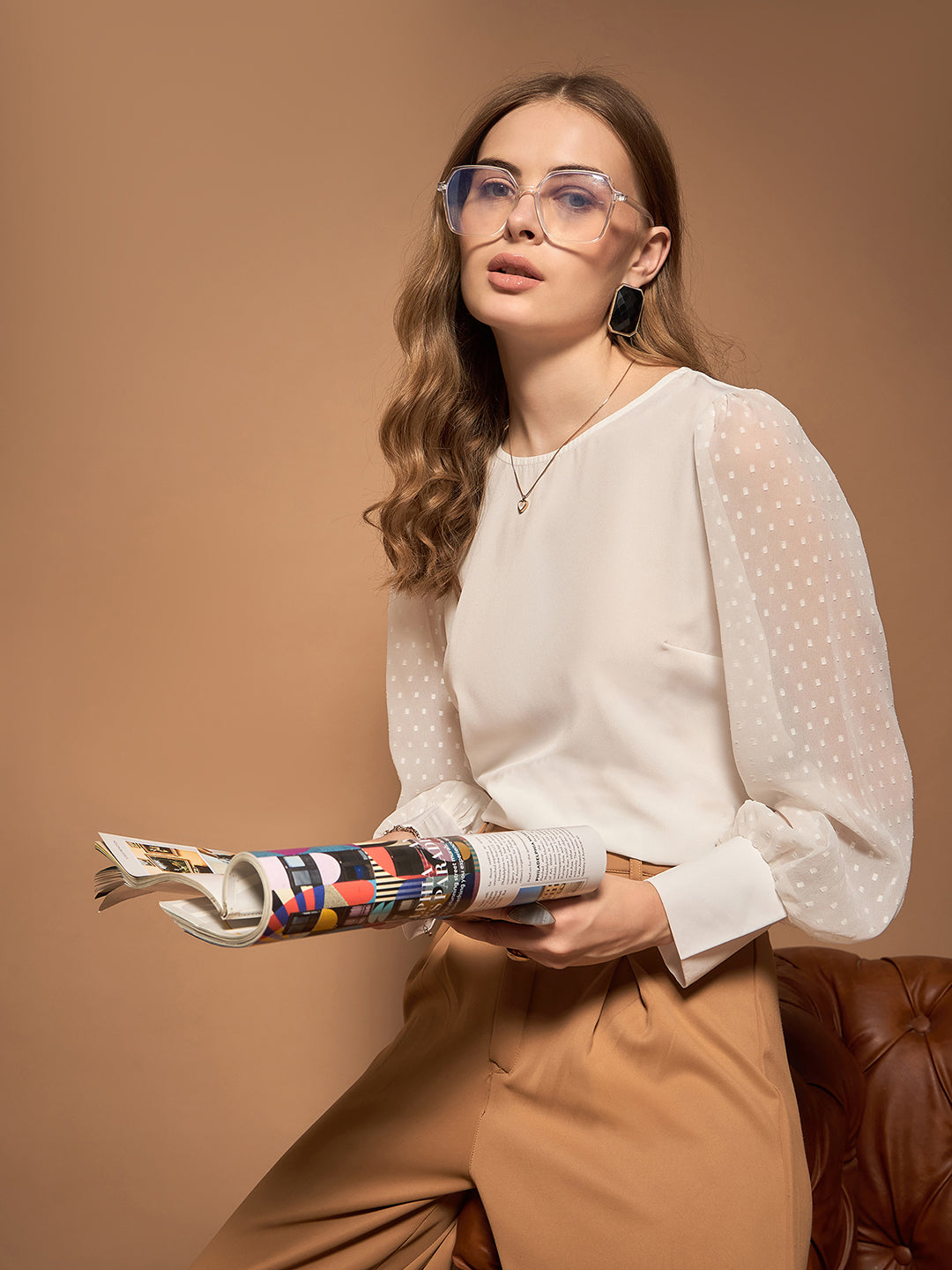 Elevate your office attire with the Berrylush BIZwear Solid White Dobby Weave Top. Crafted from premium polyester, this woven dobby garment boasts a flawless balance of comfort and sophistication. Featuring a round neckline and long sleeves for a professional look, its regular fit provides ease without compromising style. The back keyhole button-up closure adds an elegant touch while ensuring practicality in dressing up. Perfectly opaque, it ensures coverage for formal settings while maintaining chic simplicity with its solid white colour - ideal for versatile wardrobe combinations that keep you looking polished all day.
