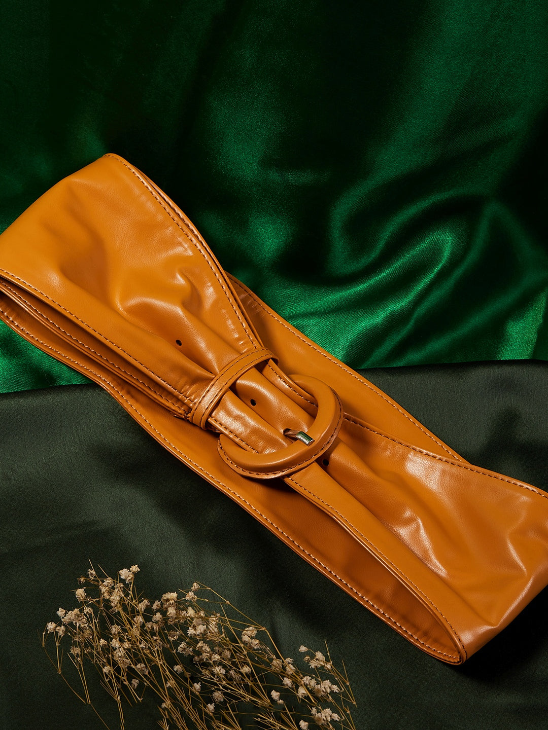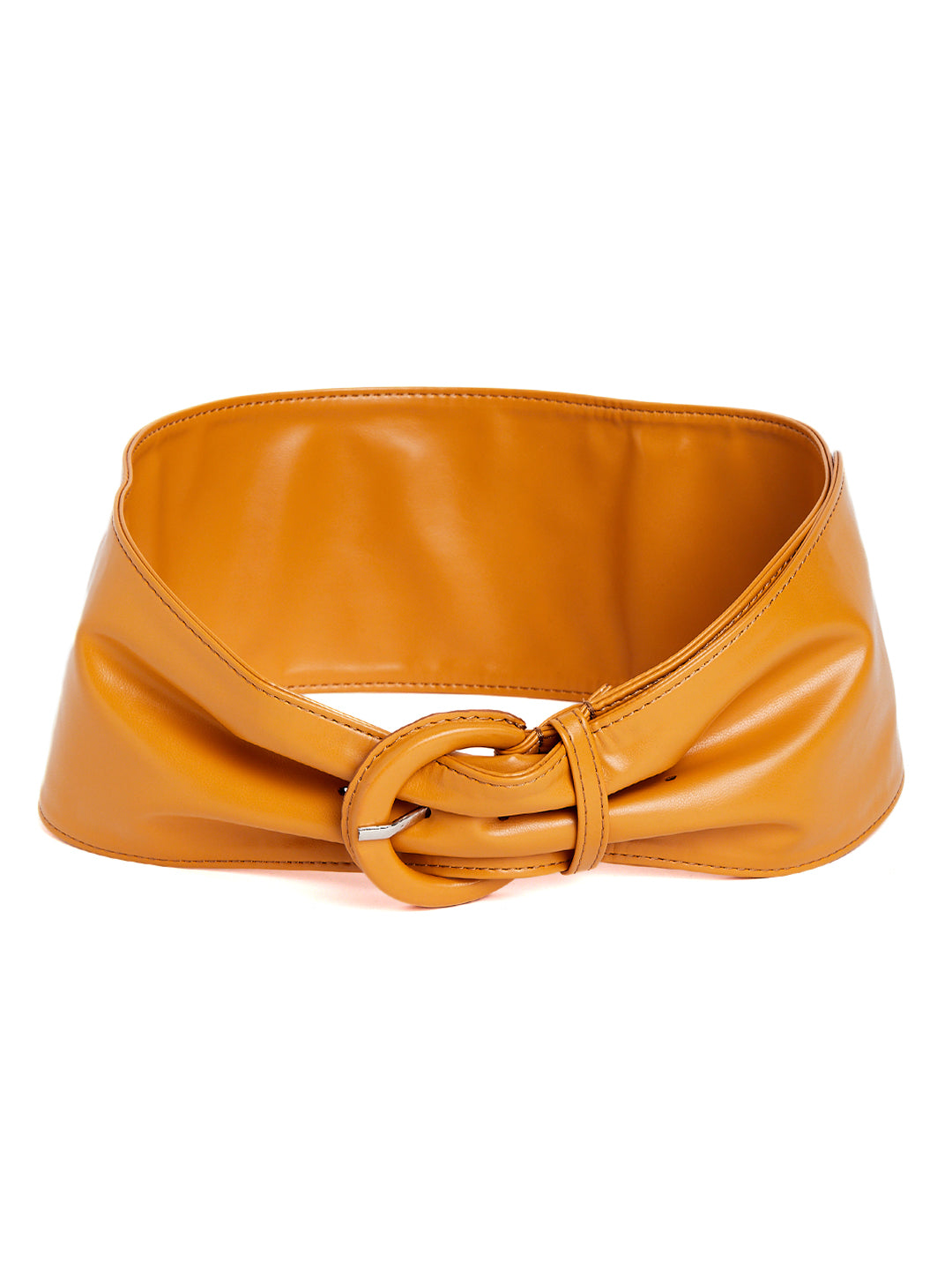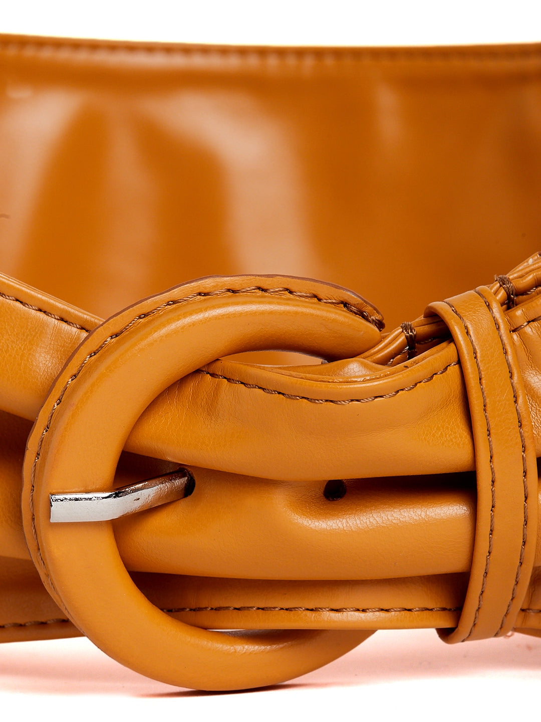Berrylush Women Solid Yellow Synthetic Leather Tang-Up Slim Belt