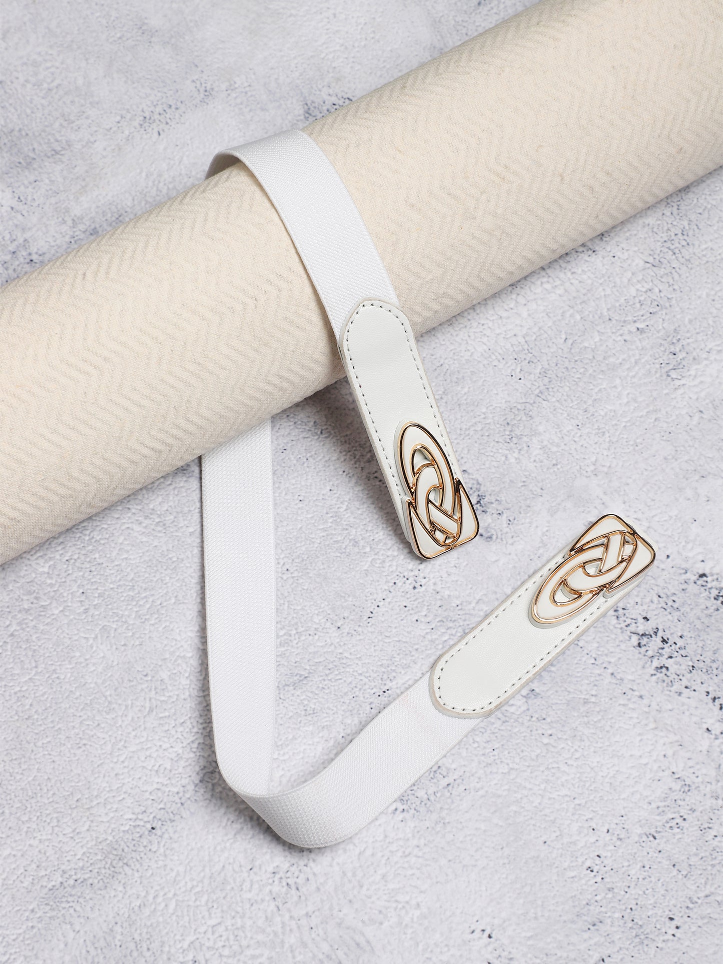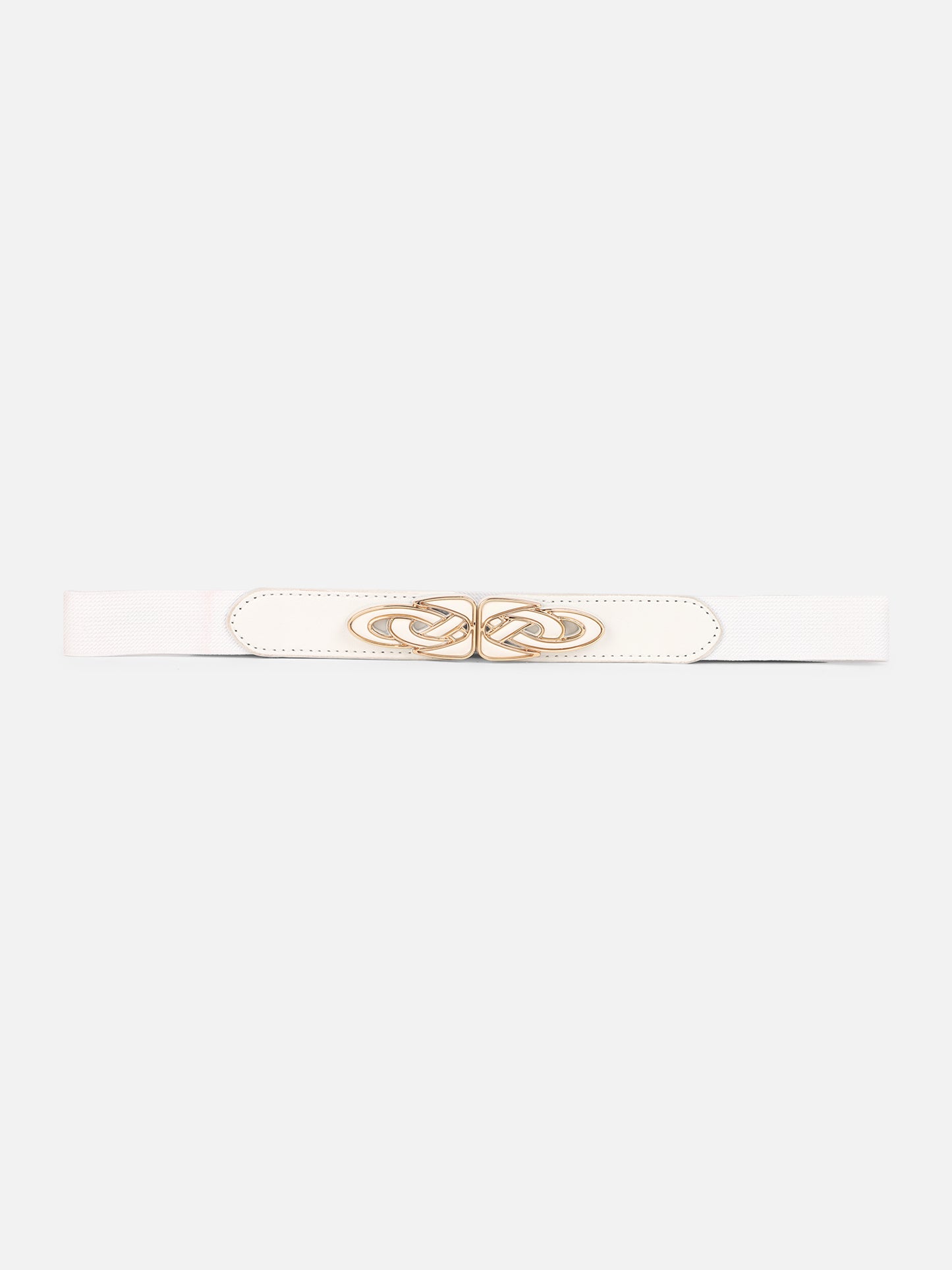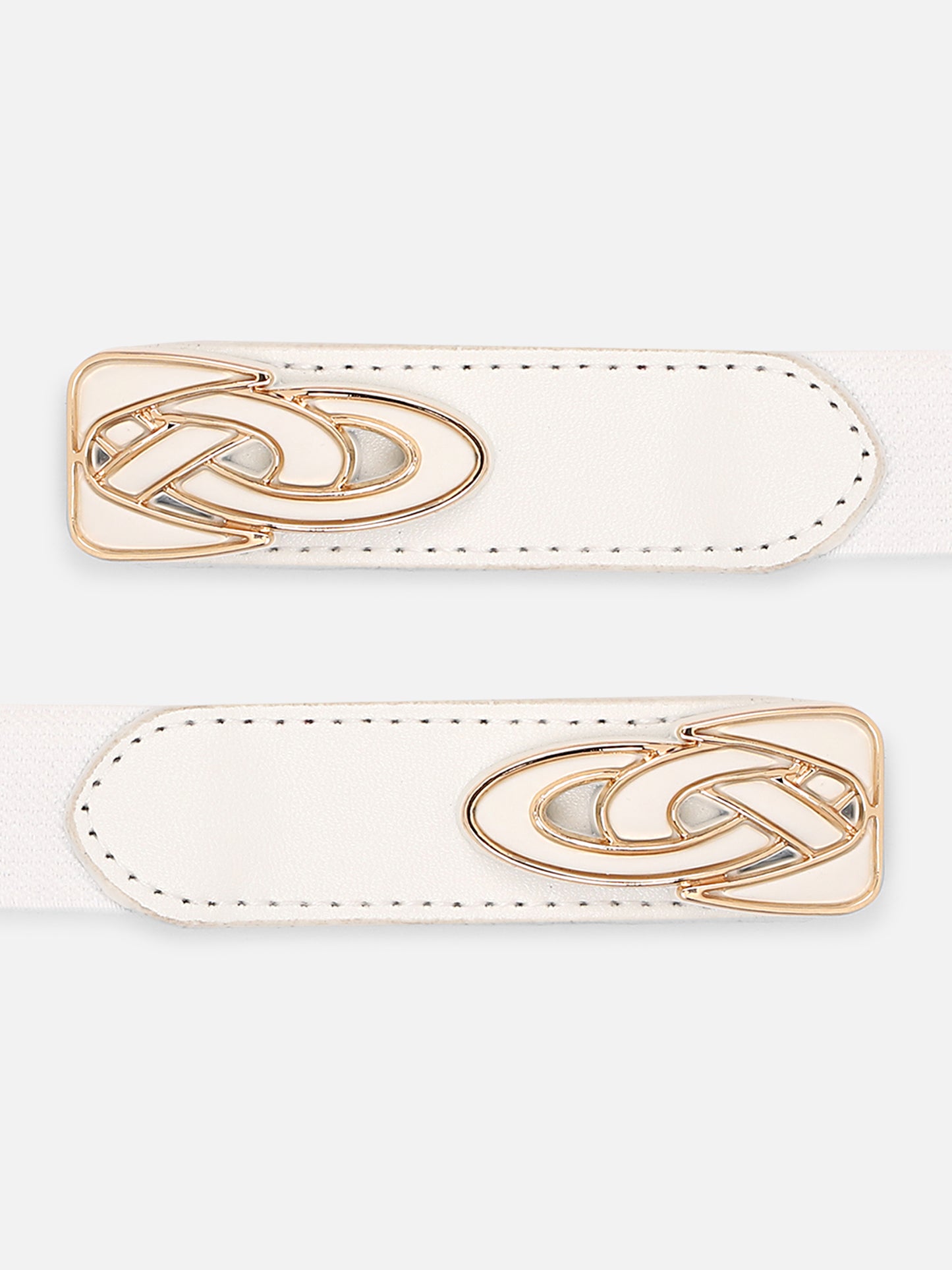 Redefine your casual style statement with elegant and posh signature pieces just like this dazzling Solid White Golden Embellished Regular Belt designed by Berrylush for its newly launched accessories collection. Featuring a charming white shade that gives this belt a classic appearance with versatile fashion notes and a cinematic vibe. Presenting a solid pattern that lends this belt urbane charm and smooth surface with a chic and polished design. Showing off an interlock closure that put forward a practical design for secure and easy opening and closing features. You can partner up this belt with your loose-fitted trousers or dress to get your dreamy silhouette with an instant style upgrade.