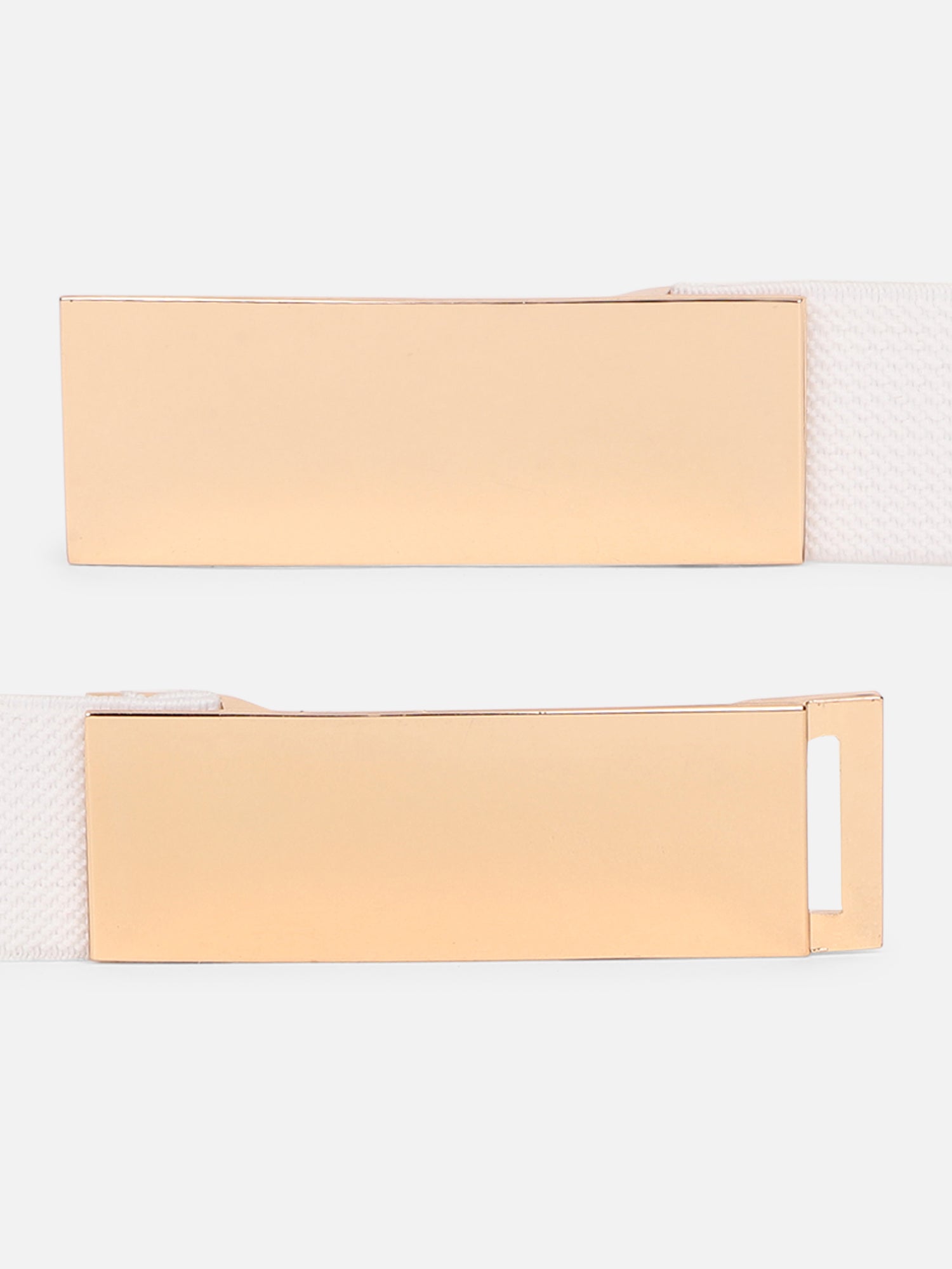 Berrylush Women Solid White Golden Embellished Nylon Interlock Regular Slim Belt