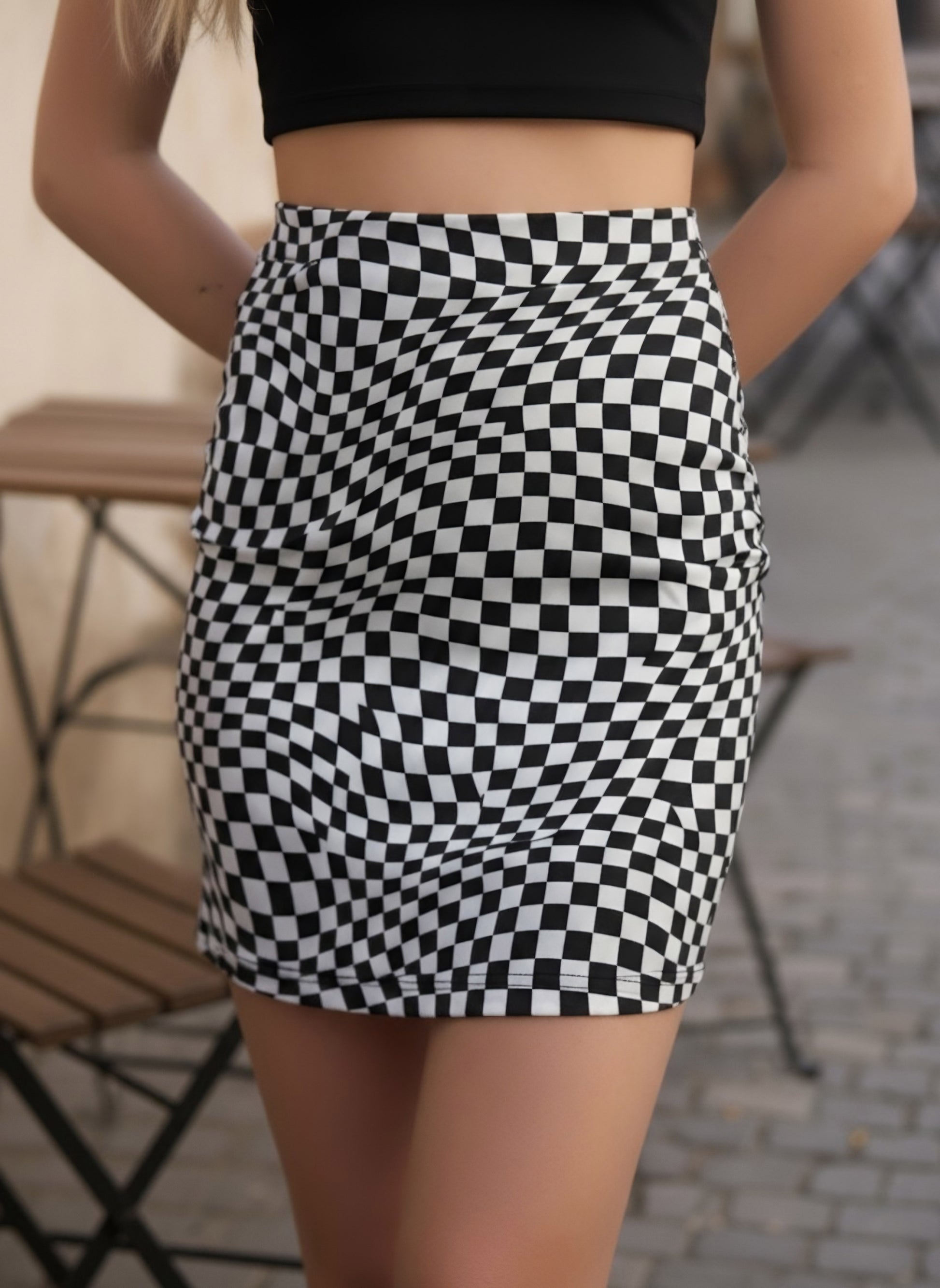 Step into effortless sophistication with the Berrylush Solid Black Square Neck Sleeveless Cropped Top and Checked Print Bodycon Mini Skirt Co-Ord Set. This chic ensemble perfectly balances modern flair and timeless style, making it an essential addition to your casual collection. The solid black cropped top features a flattering square neckline and sleeveless design, crafted from soft knitted polyester that hugs your silhouette comfortably while ensuring an opaque finish. Pair this with the eye-catching high-rise waist mini skirt, adorned in a classic black-and-white checked print that adds a playful touch to the sleek bodycon shape. Designed for ease of wear with slip-on closures on both pieces, this set is perfect for brunch dates or urban strolls alike. Whether you're mixing it up at home or exploring new spots around town, you'll radiate confidence and style wherever you go!