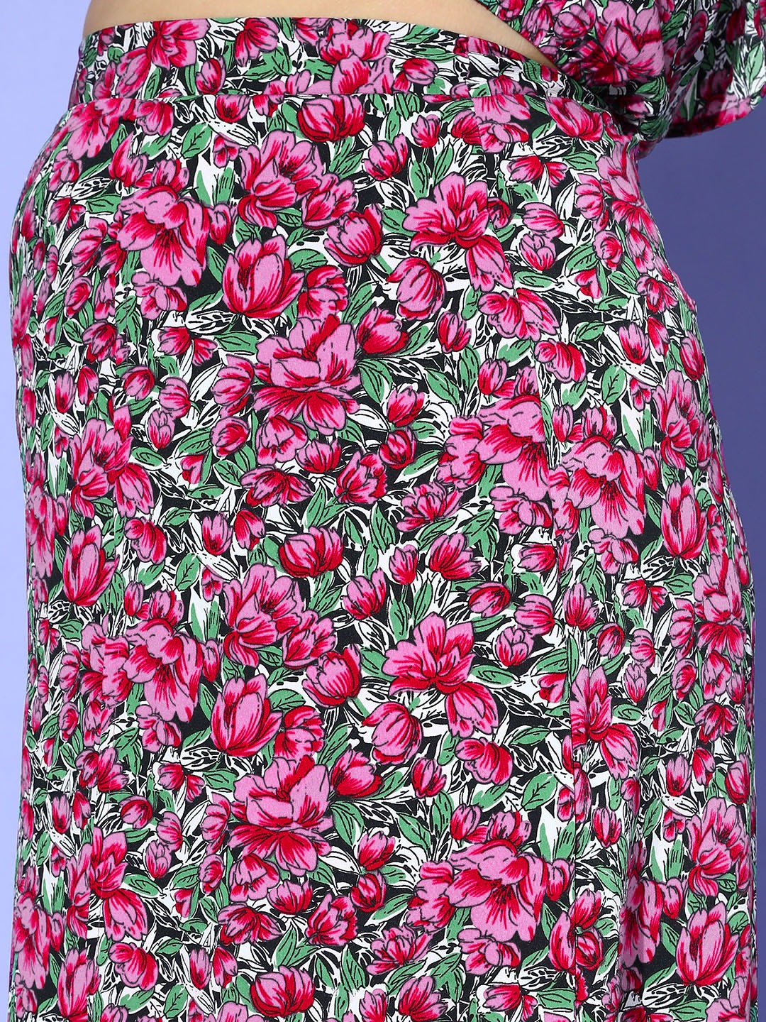 • Purple and green floral print adds a gorgeous flair to this co-ord set