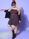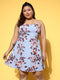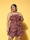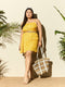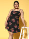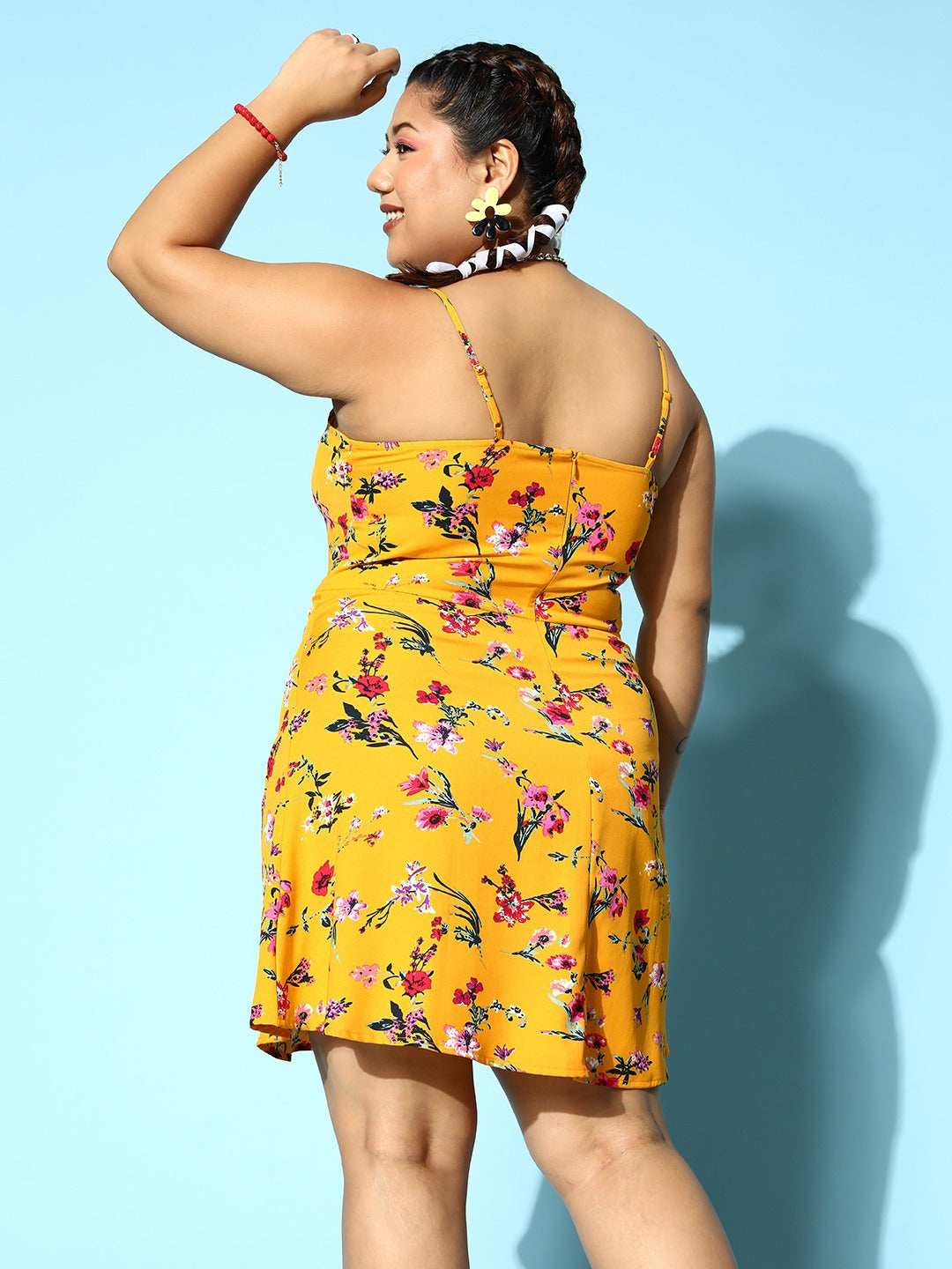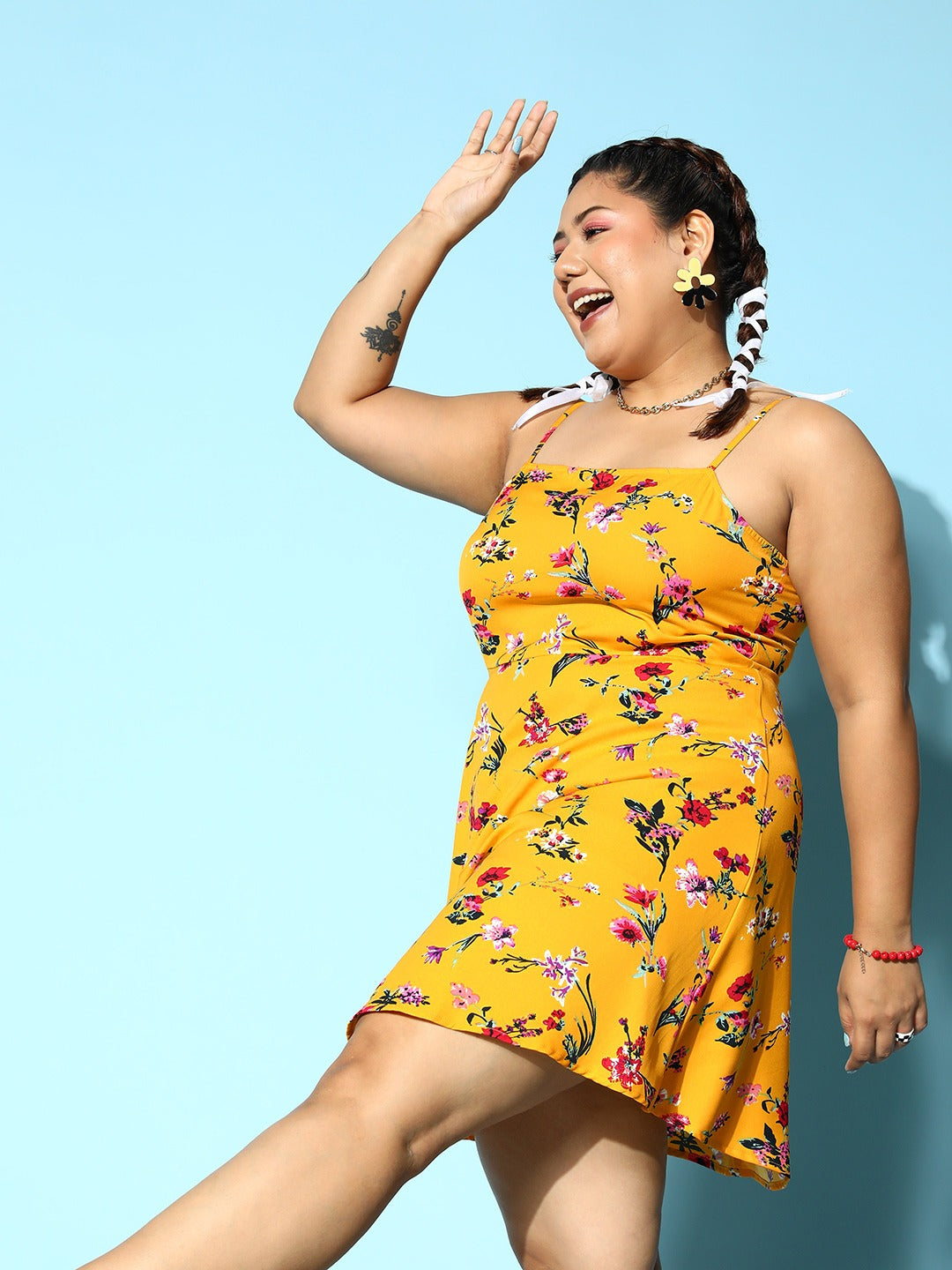 Berrylush Women Plus Size Yellow & Pink Floral Printed Square Neck Sleeveless Flared A-Line Mini Dress