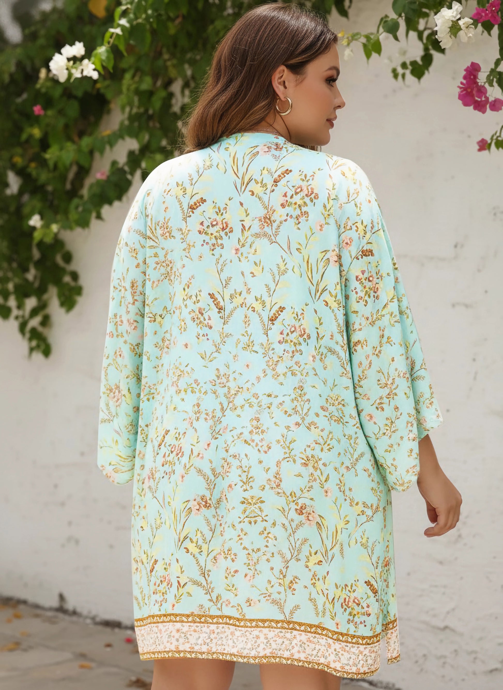 Berrylush Women Plus Size Sea Green & Brown Floral Printed Square Neck Waist Tie-Up Co-Ordinate Set