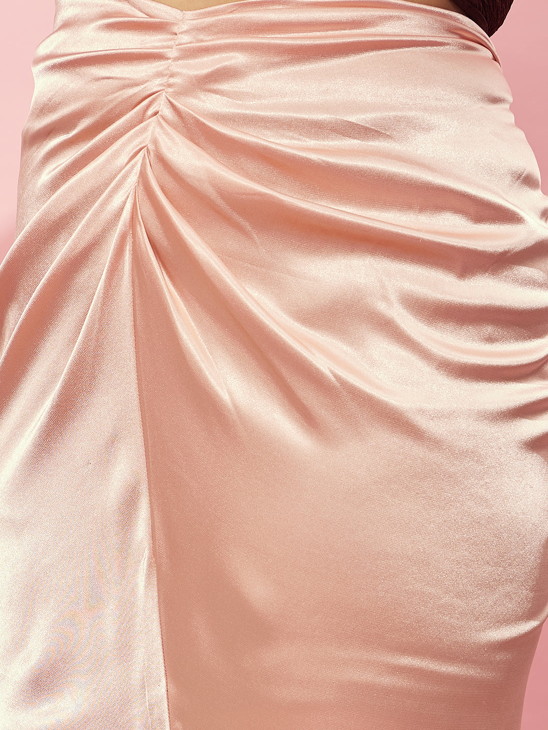 Experience the epitome of elegance with Berrylush's Solid Pink High-Rise Waist Front-Slit Tulip Hem Ruched Midi Skirt. This coveted piece is soaked in vivacious pink, perfect for any party occasion where you want to make an impact! Flaunting a trendy high-rise waist and alluring front-slit detailing, this woven polyester masterpiece dares to be edgy while retaining its class. The midi-length skirt subtly accommodates ruched surface styling that enhances your silhouette, cascading into a tulip hemline that graces the air with every move you make. Completed with an opaque finish and easy zipper closure, you can effortlessly command attention while ensuring total comfort at the same time. Make it yours today!