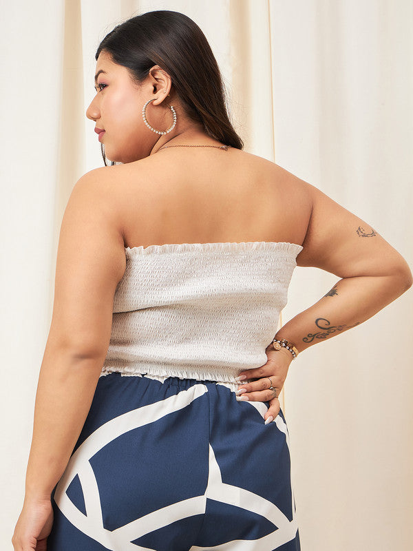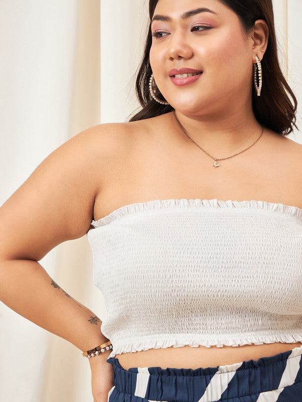 Berrylush Curve Women Solid White Off-Shoulder Neck Sleeveless Smocked Crop Tube Top