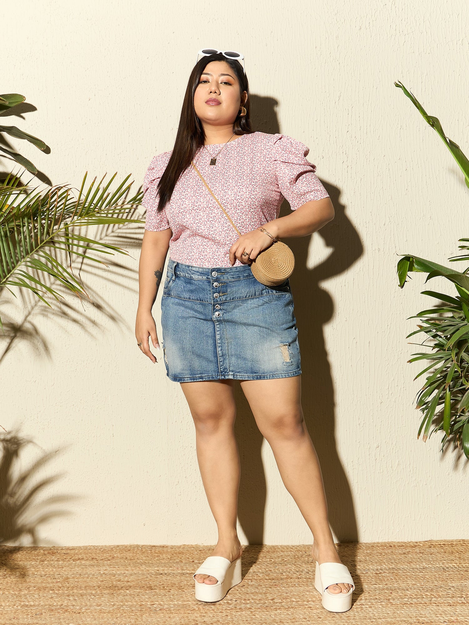 - White and pink ditsy floral print presents a radiant look for a refreshing vibe
