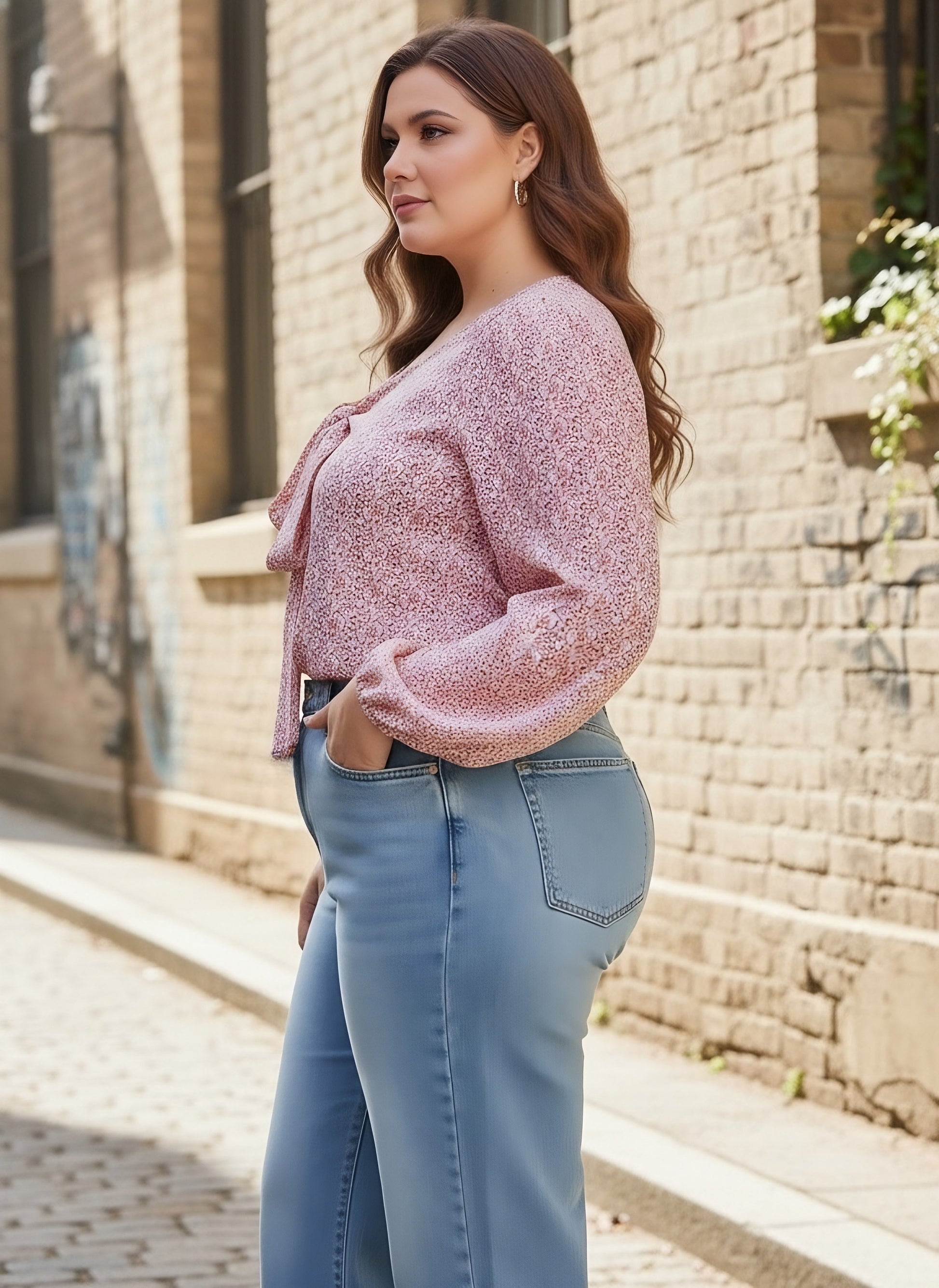 Elevate your casual wardrobe with the Berrylush Curve White and Pink Floral Printed Sweetheart Neck Bishop Sleeves Top. Crafted from soft, breathable polyester, this enchanting piece features a romantic sweetheart neckline and elegant long bishop sleeves that add a touch of sophistication to any outfit. The charming floral print in delicate shades of pink on a crisp white background makes it perfect for sunny days or brunch with friends. With its convenient tie-up front closure, you can easily adjust for the ideal fit. Embrace effortless style and comfort - make this delightful top your go-to choice for chic everyday wear!