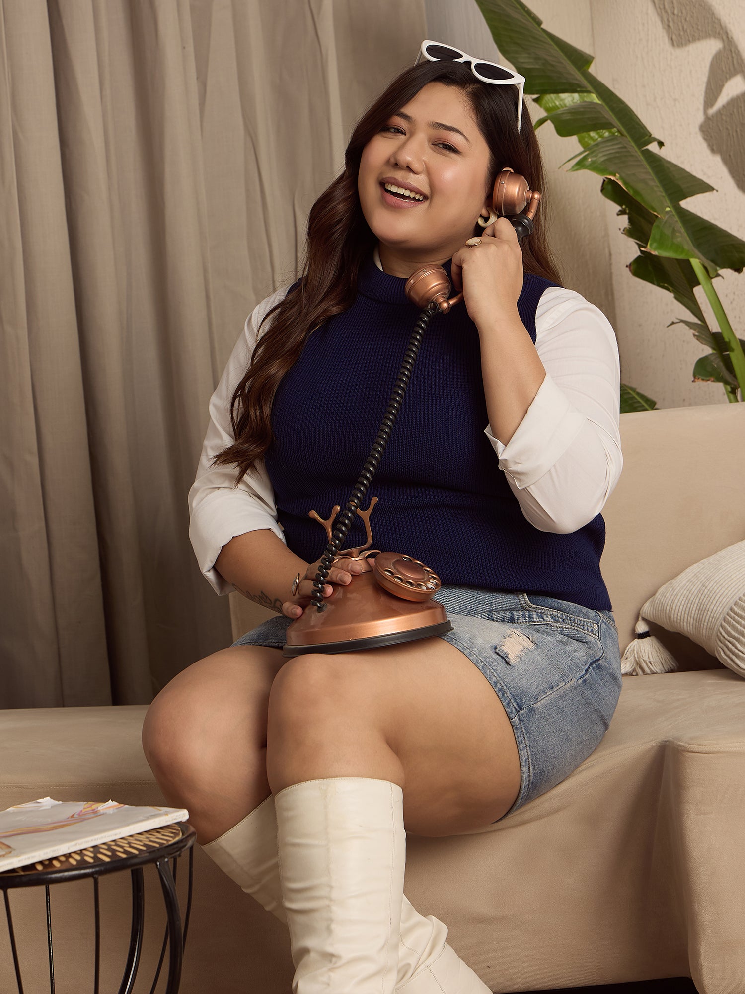 Step into timeless elegance with this navy blue sleeveless sweater from Berrylush Curve. The sophisticated turtle neck design adds a touch of refinement, while the knitted acrylic fabric ensures both comfort and durability. Perfect for casual outings, this opaque sweater features a flattering straight hemline that complements various body types. The solid pattern makes it incredibly versatile, allowing endless styling possibilities. Layer it under blazers or wear it solo - this sleeveless piece transitions seamlessly from desk to dinner. The regular length ensures optimal coverage, while the premium construction promises to keep you cozy without compromising on style.