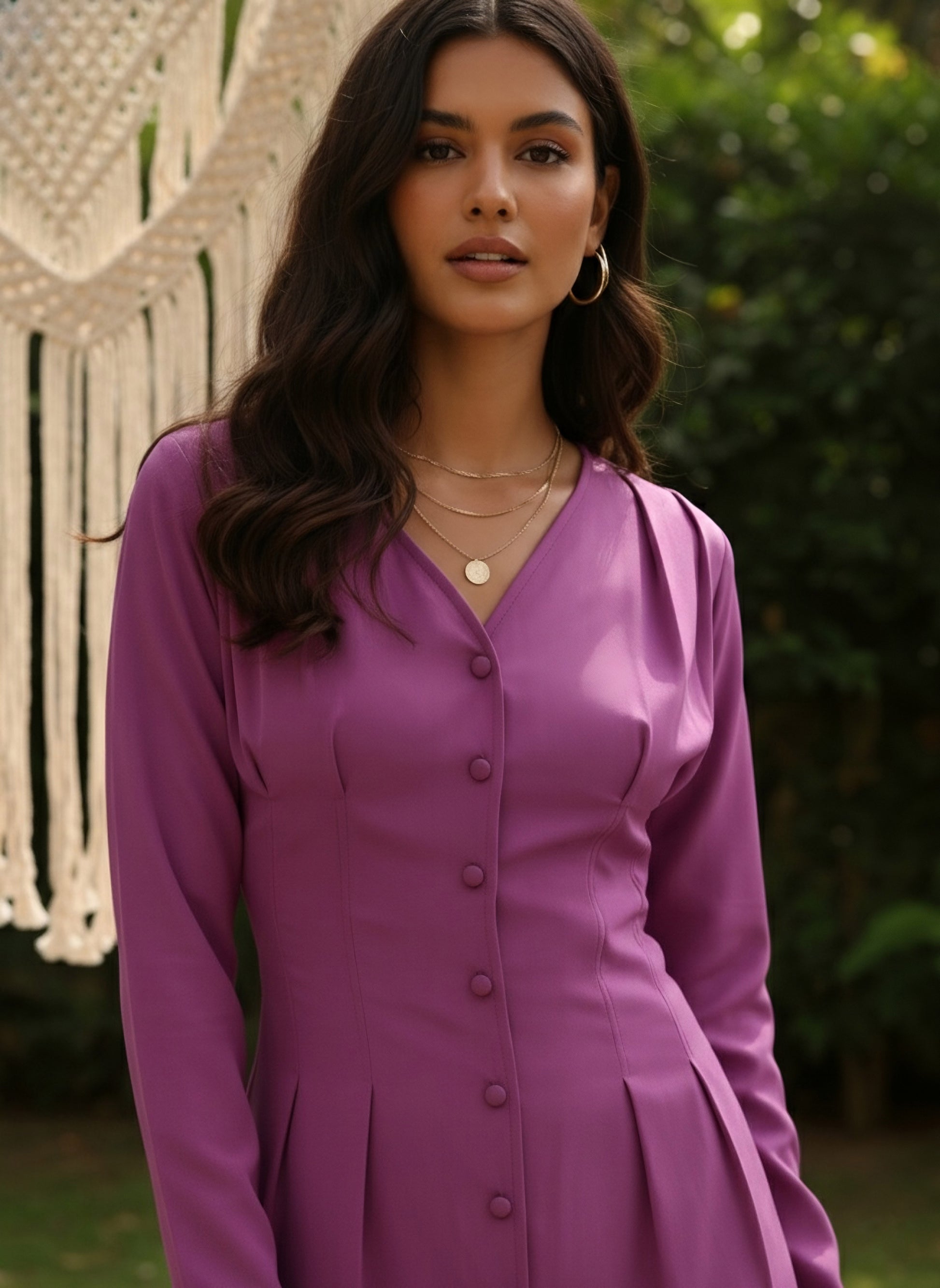 - Purple solid pattern assembles a classy look with royalty essence