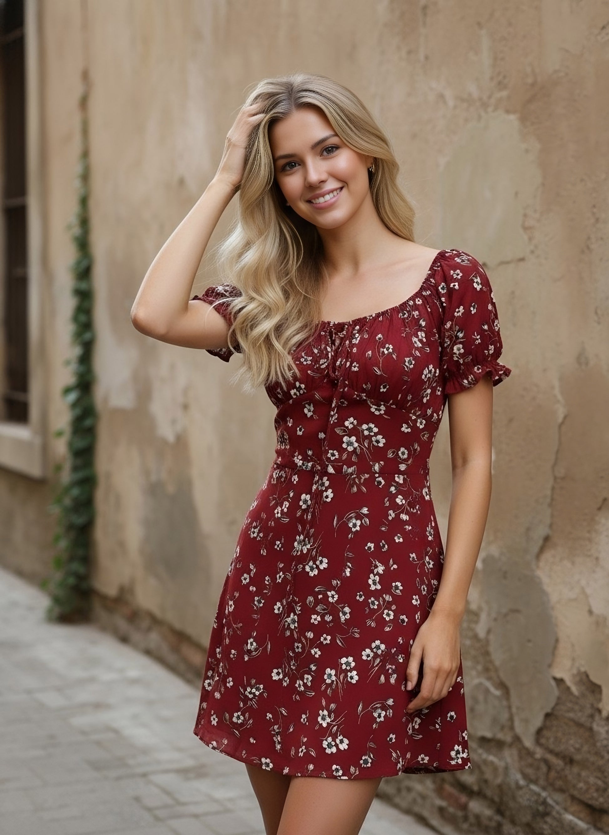 Add a mesmerizing and radiant investment to your spring wardrobe this season with this ravishing Red Floral Printed Crepe Bodycon Mini Dress from the floral print collection of Berrylush. A beautifully designed square neck with tie-ups detailing is the main attractive element of this dress as it gives a stunning outlook to your neckline with a broad structure and lustre finish. The short puffed sleeves get your arms a decorative appeal with uninterrupted movements while the concealed zip closure provides an easy on-off process of the dress. The mesmerizing combination of red shade with floral print represents a trendy outlook with a modern finish. Complete your spring casual look by pairing this dress with block heels and minimalistic silver jewellery to get a refreshing and sophisticated final look.