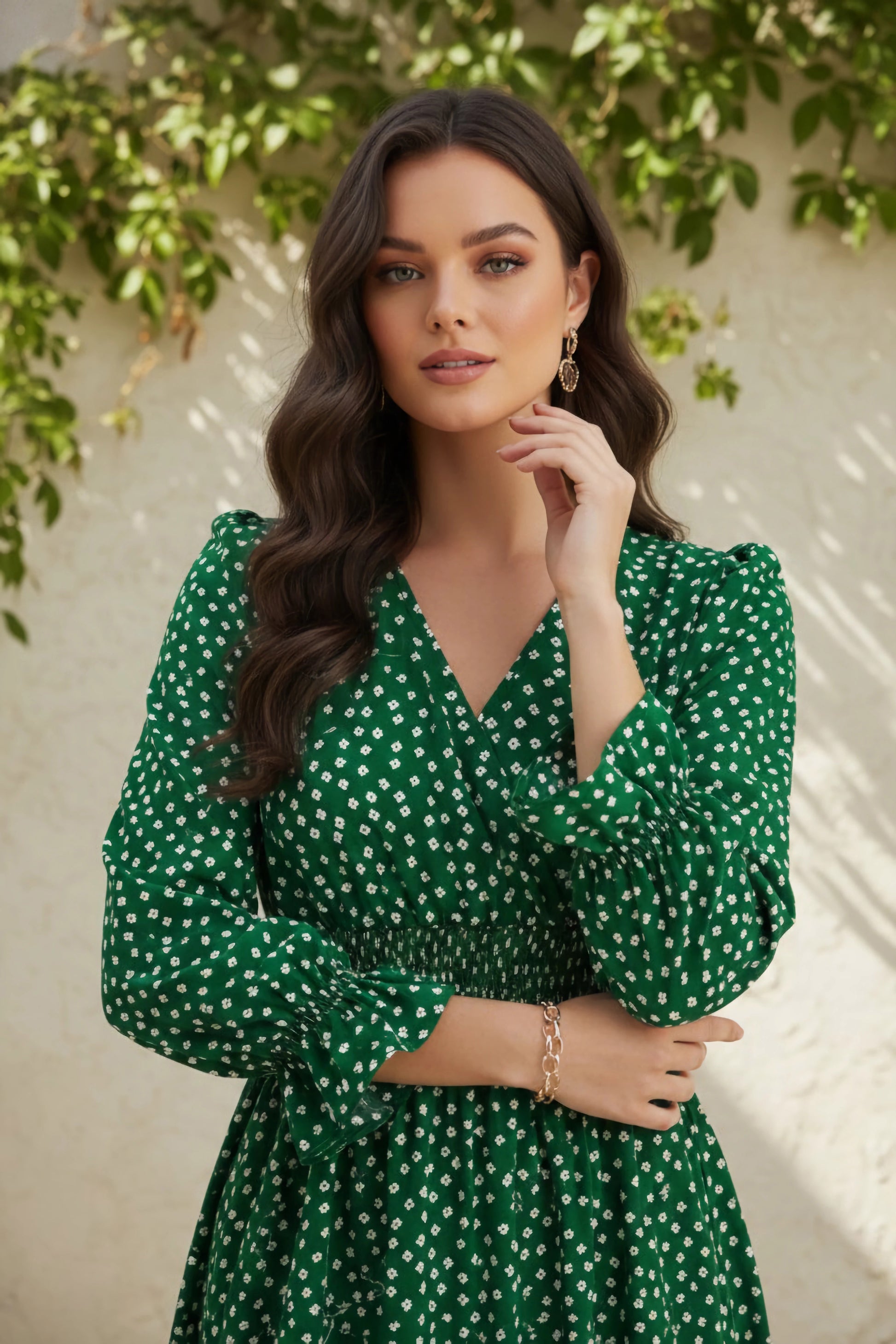 - Green shade with white floral print frames a blend of feminine and classy style