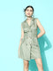Berrylush Women Solid Green V-Neck Sleeveless Button-Up Buckle Belted Straight Hem Mini Blazer Dress