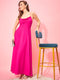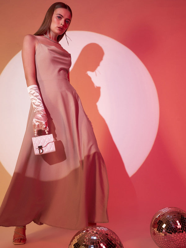 Berrylush Women Solid Light Pink Cowl Neck Sleeveless Lace-Up Backless Thigh-High Slit Flared Maxi Dress
