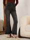 Berrylush Women Solid Black High-Rise Waist Four-Pocket Cotton Distressed Regular Bootcut Jeans