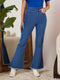 Introducing Berrylush's trendsetting Solid Black High-Rise Waist Four-Pocket Cotton Distressed Regular Bootcut Jeans, the ultimate blend of style and comfort for your casual wardrobe. Crafted from premium cotton fabric with a knitted weave, these jeans offer a soft yet durable texture that conforms to your every move. Featuring a sleek solid black colour in a dark shade and precise distressed detailing, they deliver an edgy yet sophisticated look perfect for various occasions. These jeans are designed with four functional pockets, handy belt loops, and secure button-zip closure ensuring practicality without sacrificing style. The high-rise waist complements the flattering bootcut silhouette making them essential in any fashion-savvy lineup.