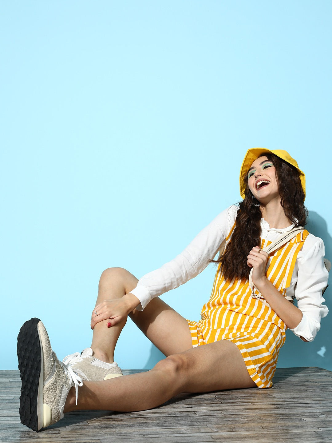 Keep it simple with a tint of cheerfulness and artistic style note with this bedazzling Yellow Striped Basic Jumpsuit from the latest summer collection of Berrylush. Beautifully designed with a square neck design that gives your neckline a broad and breathable structure. Flaunting sleeveless design that makes this jumpsuit versatile with hassle-free movements to your arms. Made from the finest polyester fabric that keeps this jumpsuit light in weight with excellent swear-wicking attributes. Partner up this basic jumpsuit with your favourite white top, a pair of trendy sneakers, pearl earrings, and a cute side bag for a stunning look.