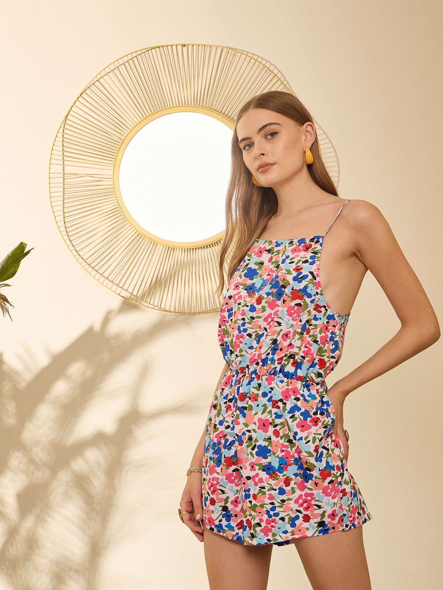 • The allover floral-inspired print gives this playsuit a fashionable look