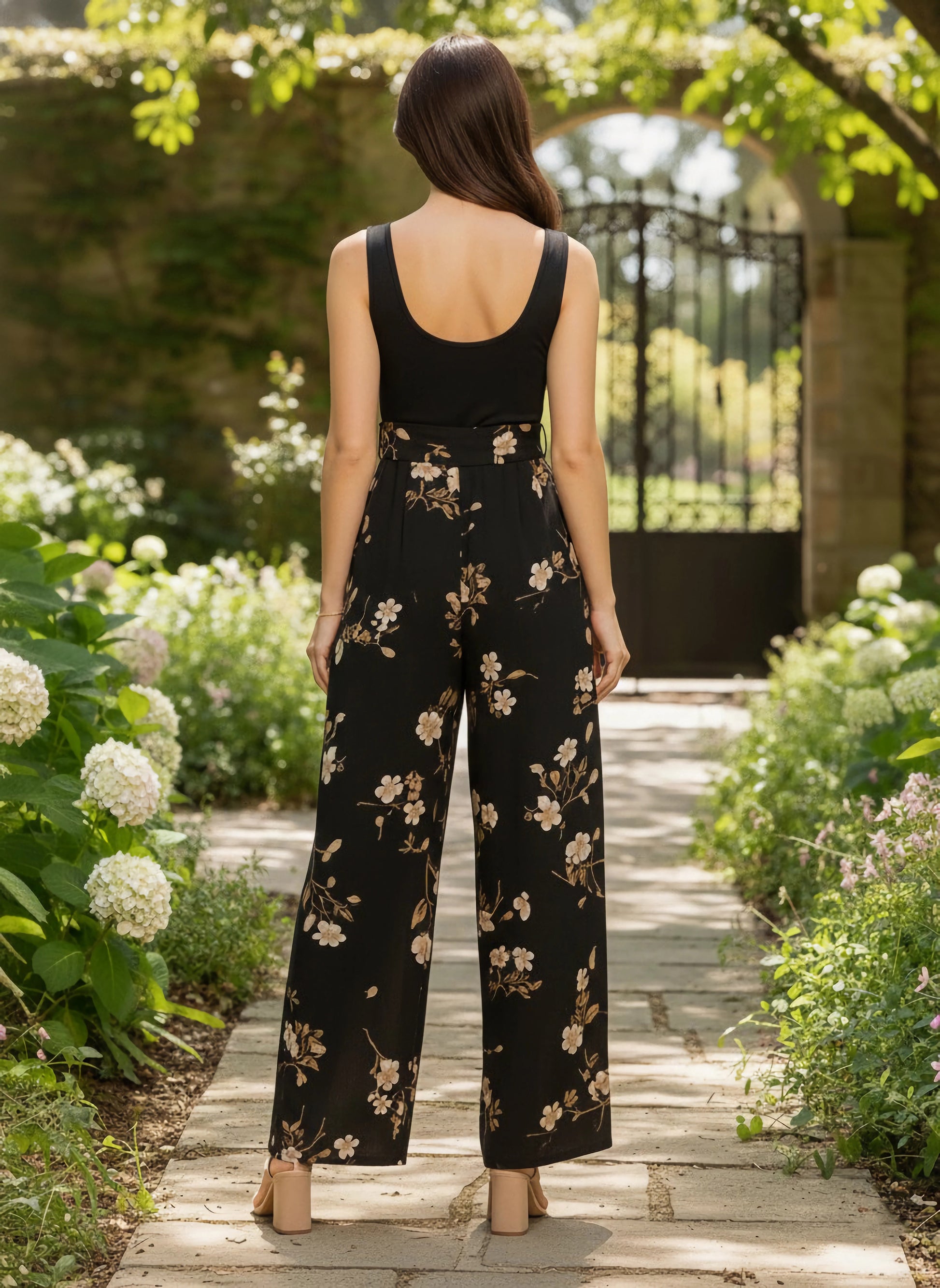 Step into effortless elegance with the Black & Yellow Floral Printed Square Neck Sleeveless Scoop Back Waist Tie-Up Wide-Leg Pleated Maxi Jumpsuit by Berrylush. Crafted from soft, breathable polyester, this stunning piece features a striking floral print that captures attention while providing all-day comfort. The square neckline and sleeveless design allow for a fresh silhouette perfect for sunny outings or relaxed gatherings. A unique scoop back adds an alluring twist, while the tie-up closure ensures an adjustable fit tailored to your shape. Its wide-leg pleated style flatters every figure and creates graceful movement with each step you take - ideal for casual meetings or brunches with friends. Opaque fabric delivers confidence without compromising breathability, making this jumpsuit both chic and practical. Slip into this versatile outfit and embrace effortless style - you'll be turning heads wherever you go!